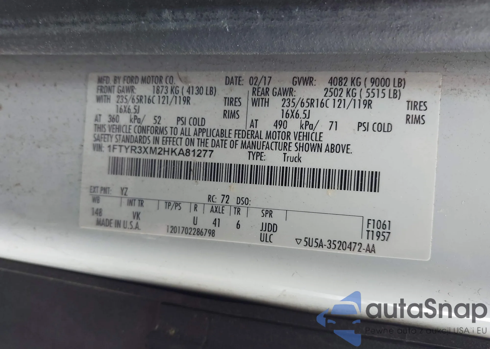• VIN: 1FTYR3XM2HKA81277