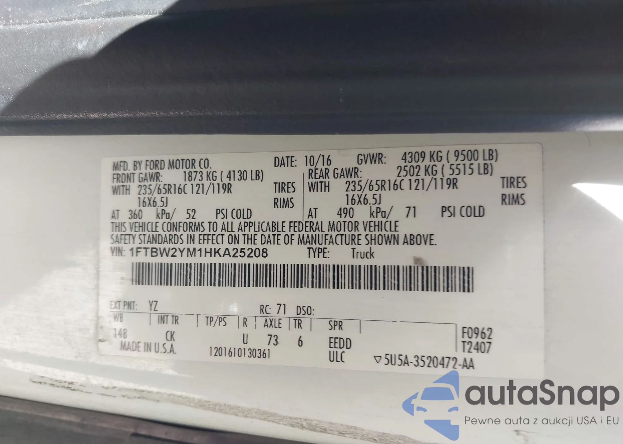 • VIN: 1FTBW2YM1HKA25208