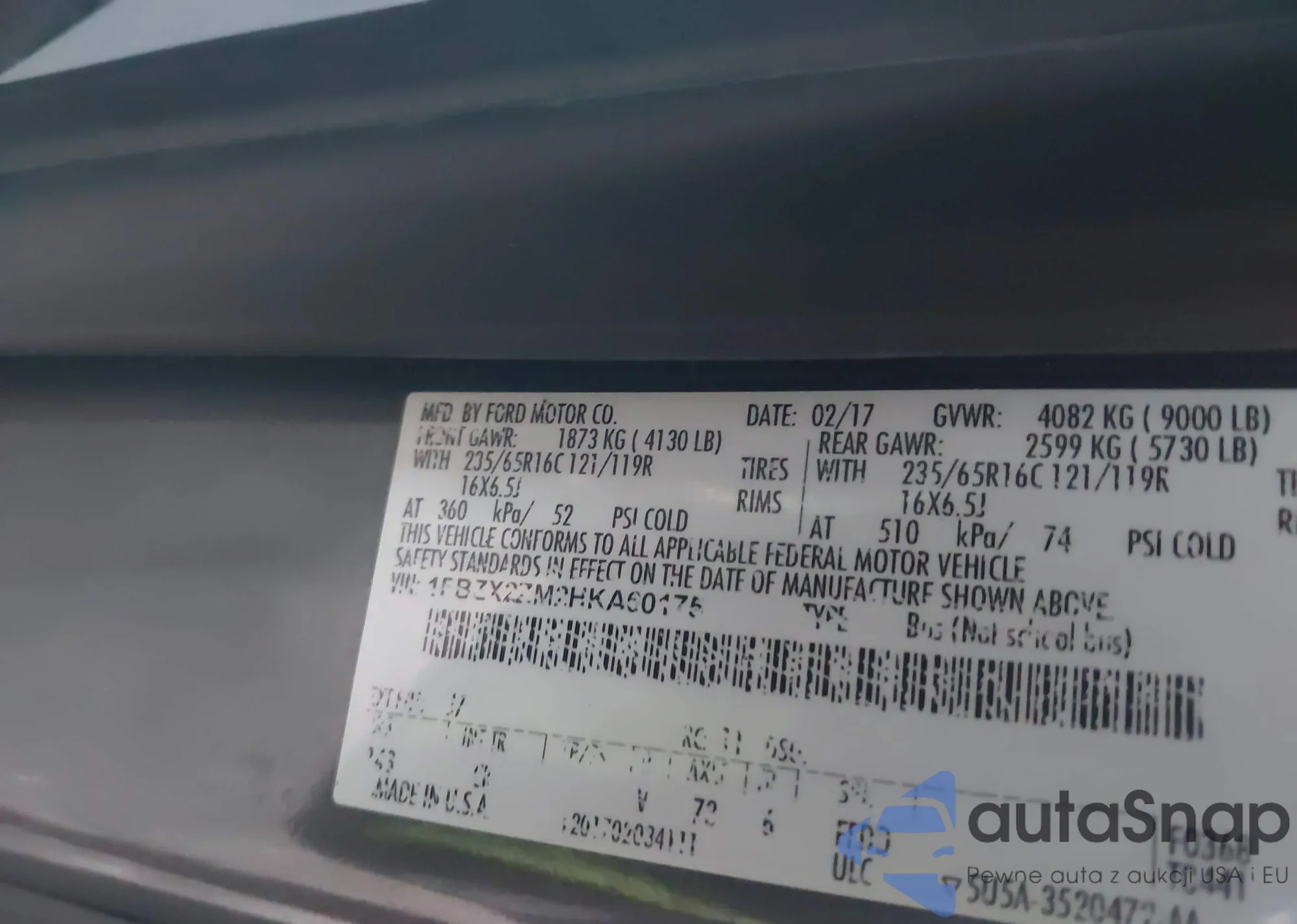 Samochód Ford Transit 2017 (VIN 1FBZX2ZM2HKA60175) sprzedaje go niezweryfikowany sprzedawca. Zalecamy raport Carfax i potwierdzenie możliwości rejestracji pojazdu przed zakupem.
