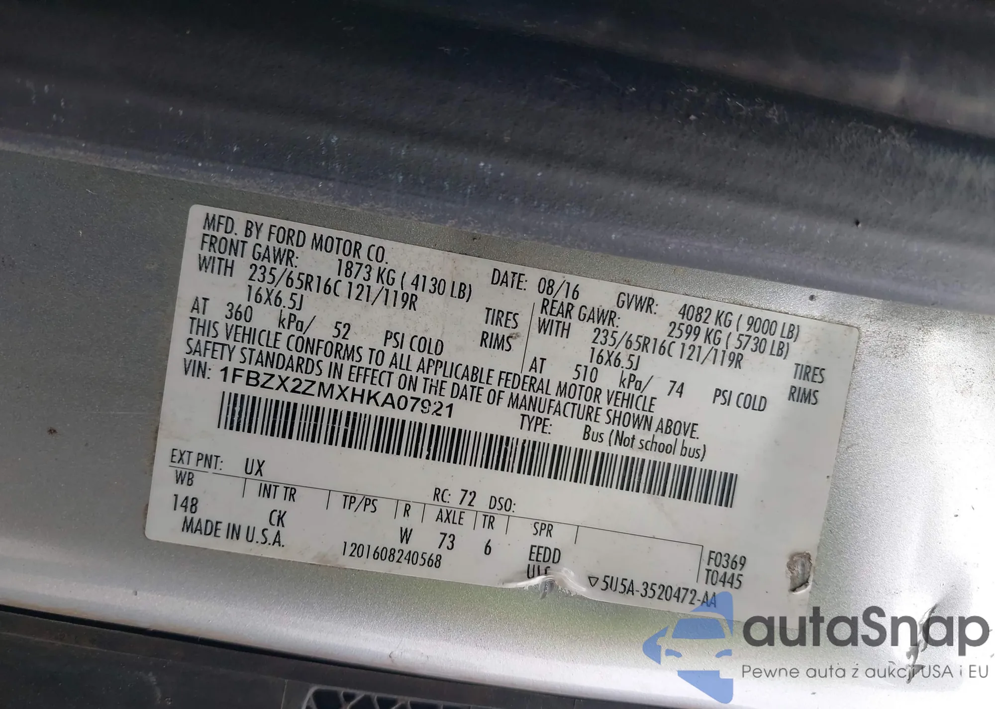 VIN: 1FBZX2ZMXHKA07921