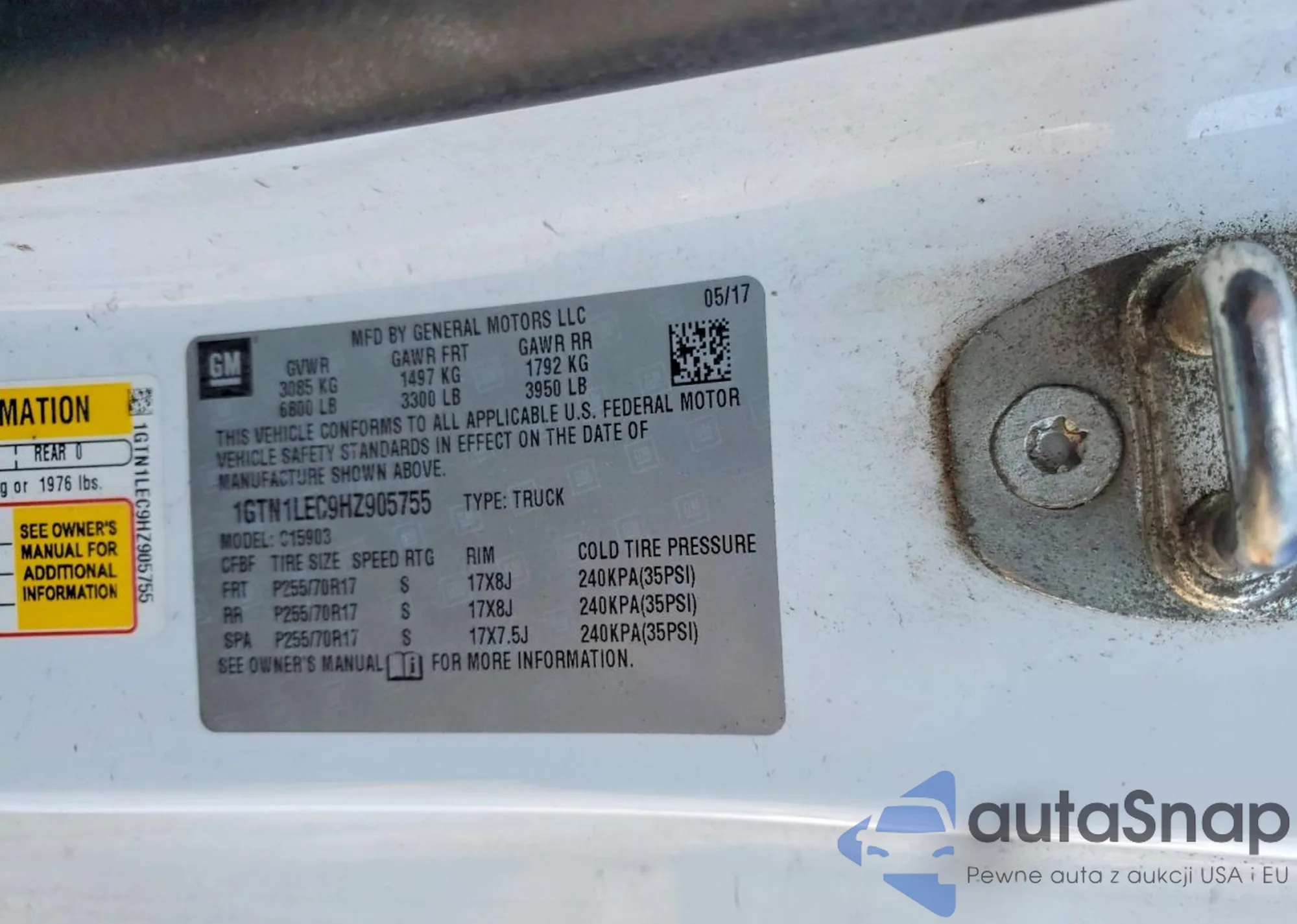 Samochód GMC Sierra 2017 (VIN 1GTN1LEC9HZ905755) sprzedaje go niezweryfikowany sprzedawca. Zalecamy raport Carfax i potwierdzenie możliwości rejestracji pojazdu przed zakupem.