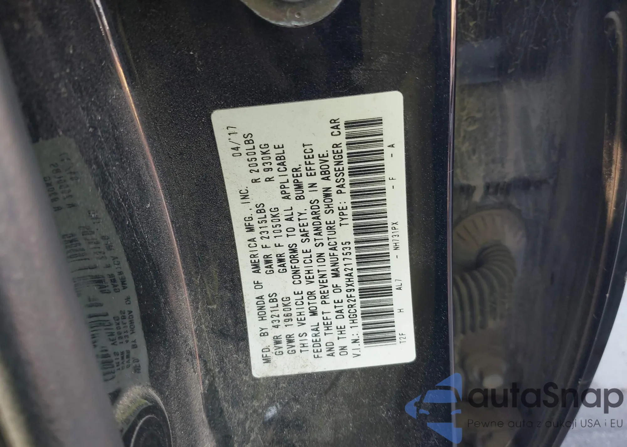 VIN: 1HGCR2F9XHA217535