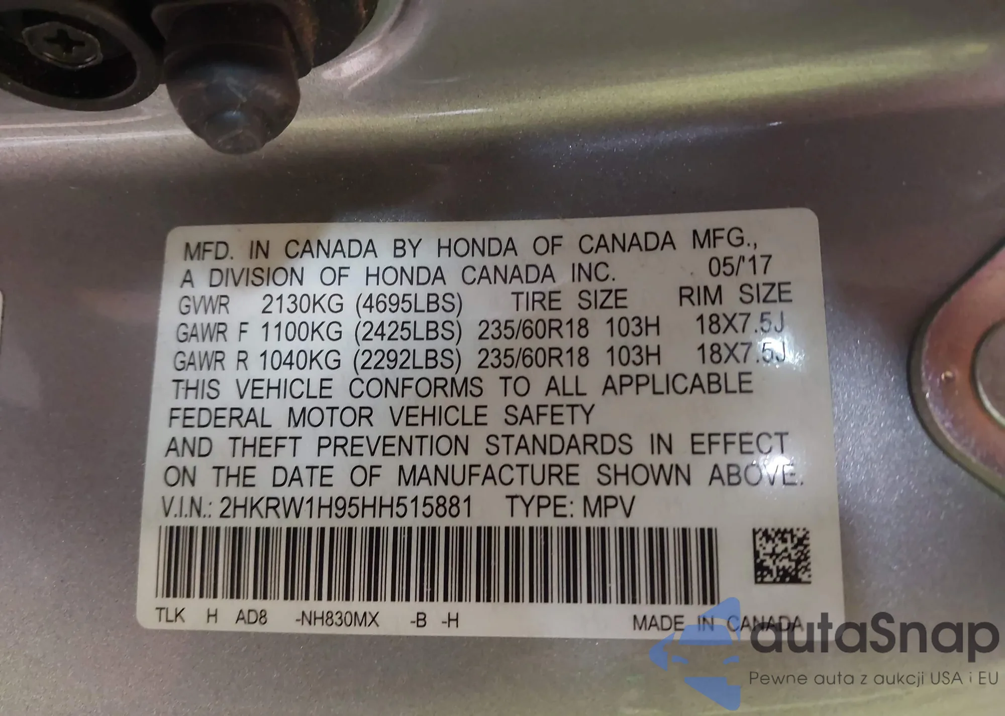 VIN: 2HKRW1H95HH515881