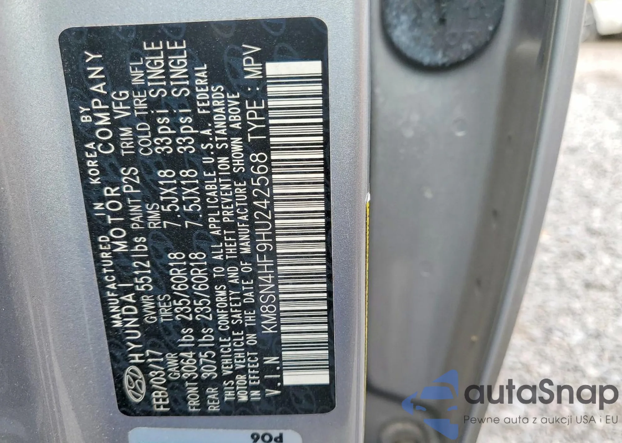 Samochód Hyundai Santa Fe 2017 (VIN KM8SN4HF9HU242568) nie był wcześniej licytowany. Dokumenty są czyste, przebieg odpowiada lub jest niższy niż średnia rynku. Sprzedaje go firma ubezpieczeniowa – polecamy zakup. Dostawa do portu zajmie ok. 6–8 tygodni.