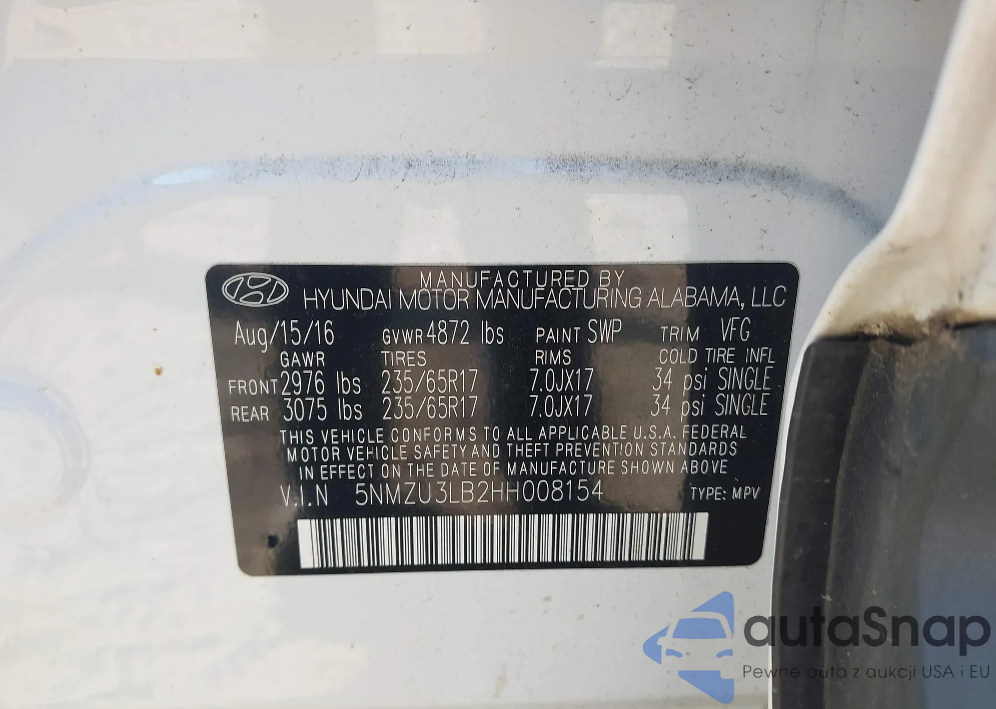 VIN: 5NMZU3LB2HH008154