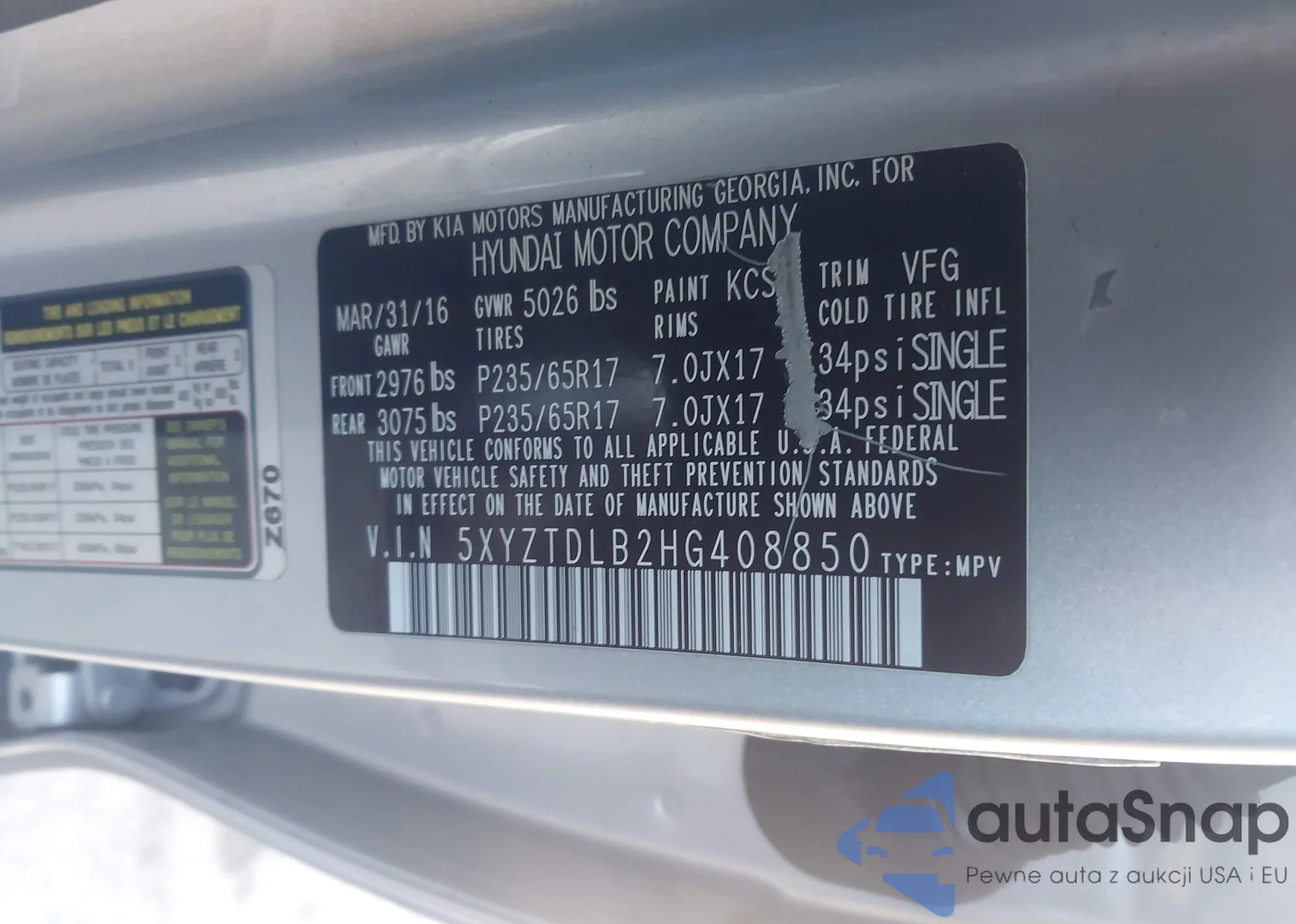 Samochód Hyundai Santa Fe 2017 (VIN 5XYZTDLB2HG408850) nie był wcześniej licytowany. Dokumenty są czyste, przebieg odpowiada lub jest niższy niż średnia rynku. Sprzedaje go firma ubezpieczeniowa – polecamy zakup. Dostawa do portu zajmie ok. 6–8 tygodni.