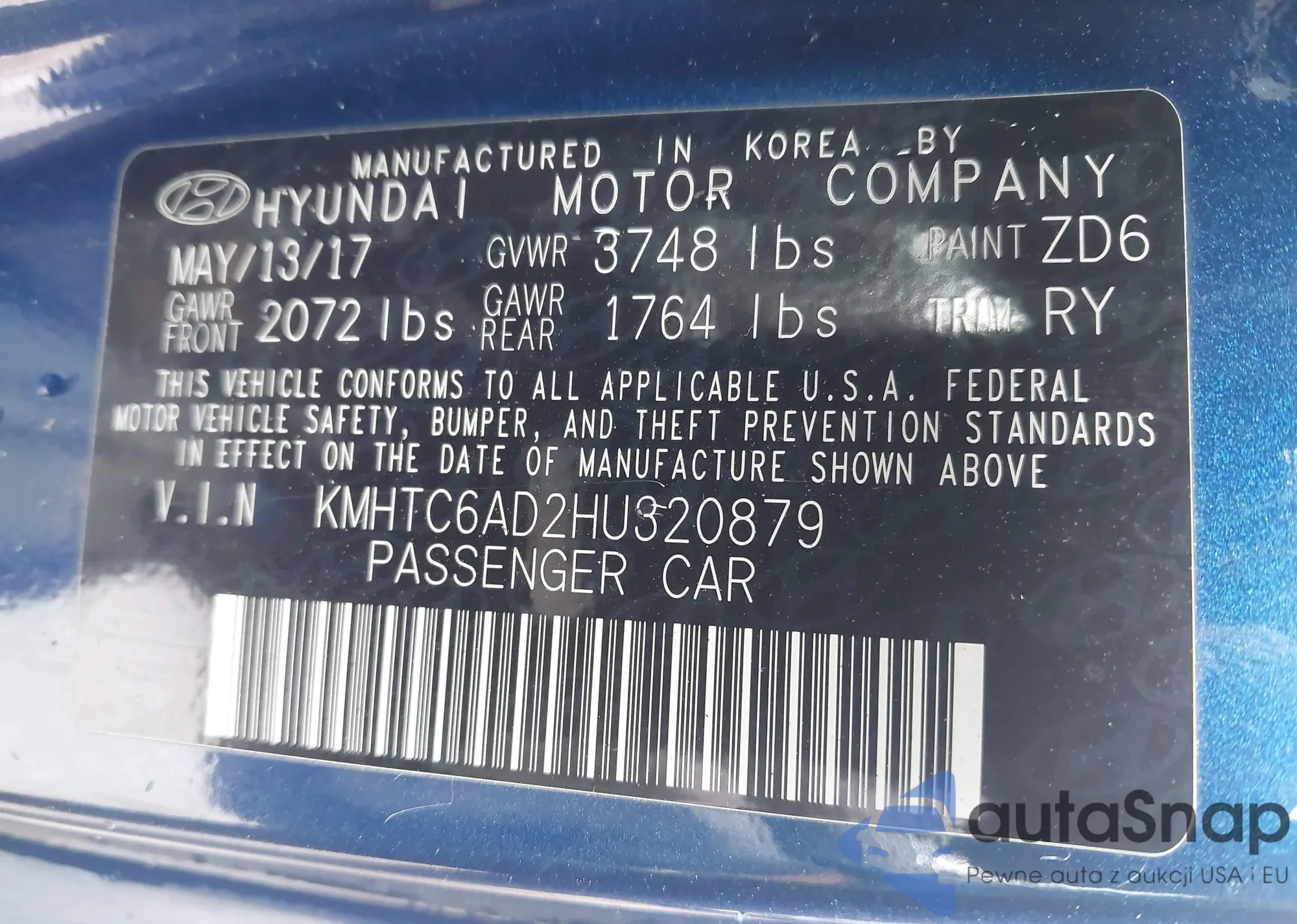 KMHTC6AD2HU320879 IAAI