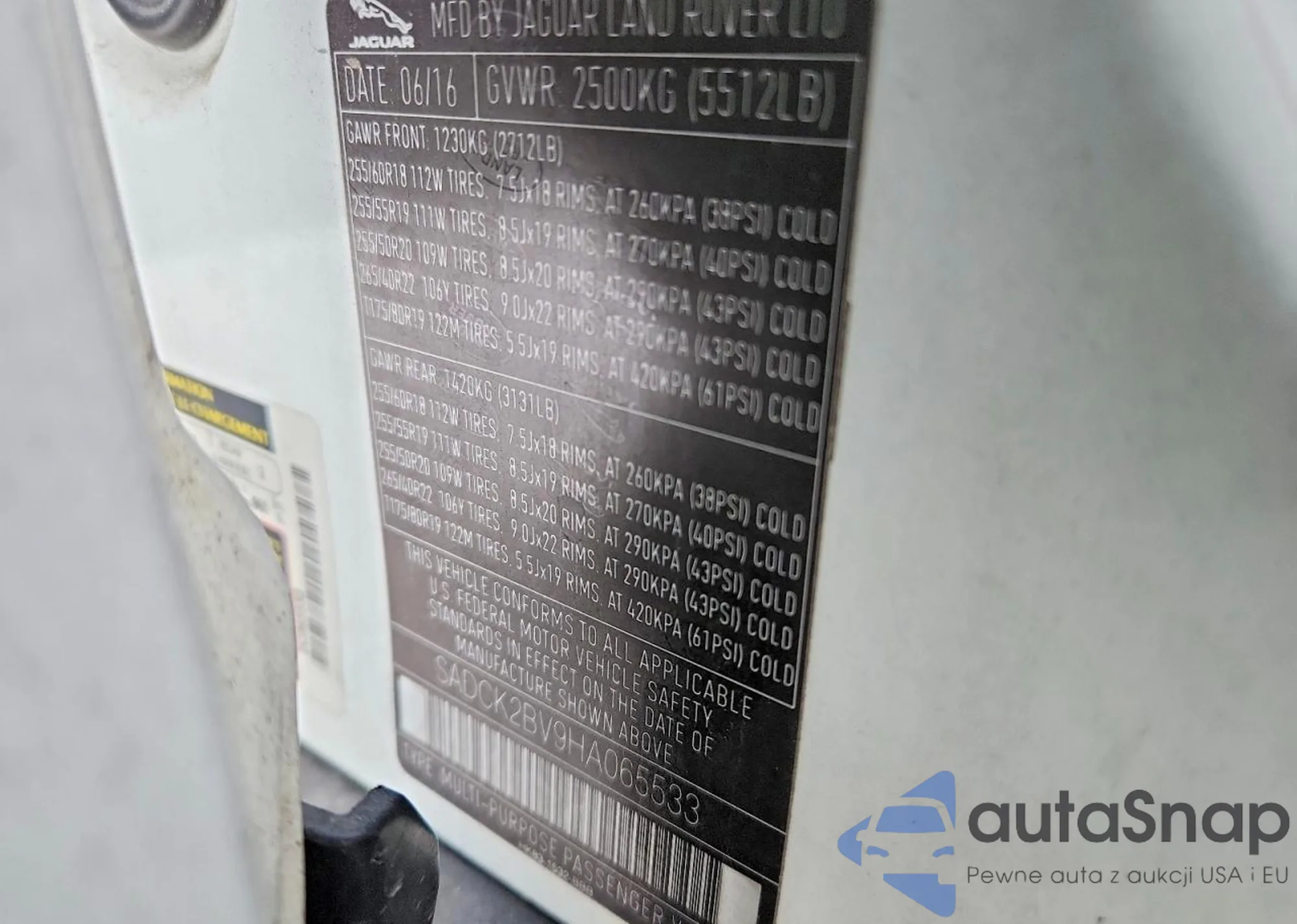 Samochód Jaguar F-Pace 2017 (VIN SADCK2BV9HA065533) sprzedaje go niezweryfikowany sprzedawca. Zalecamy raport Carfax i potwierdzenie możliwości rejestracji pojazdu przed zakupem.