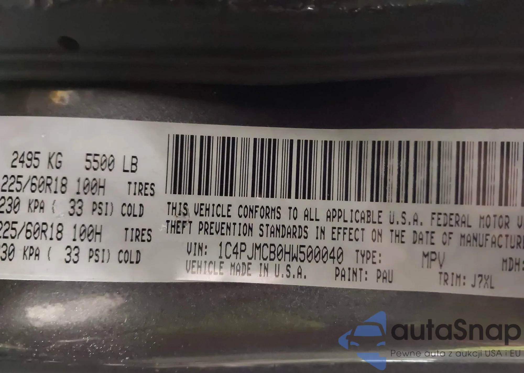 • VIN: 1C4PJMCB0HW500040