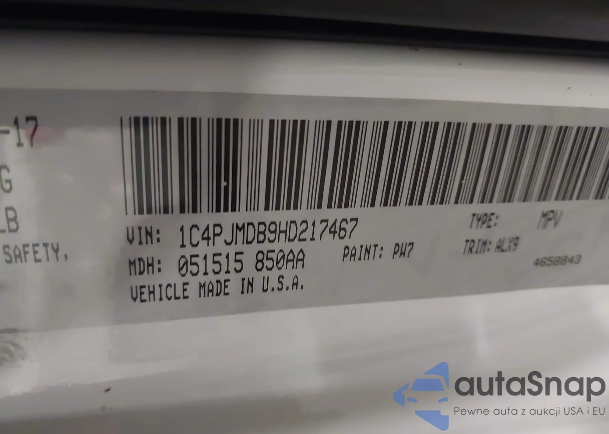 • VIN: 1C4PJMDB9HD217467