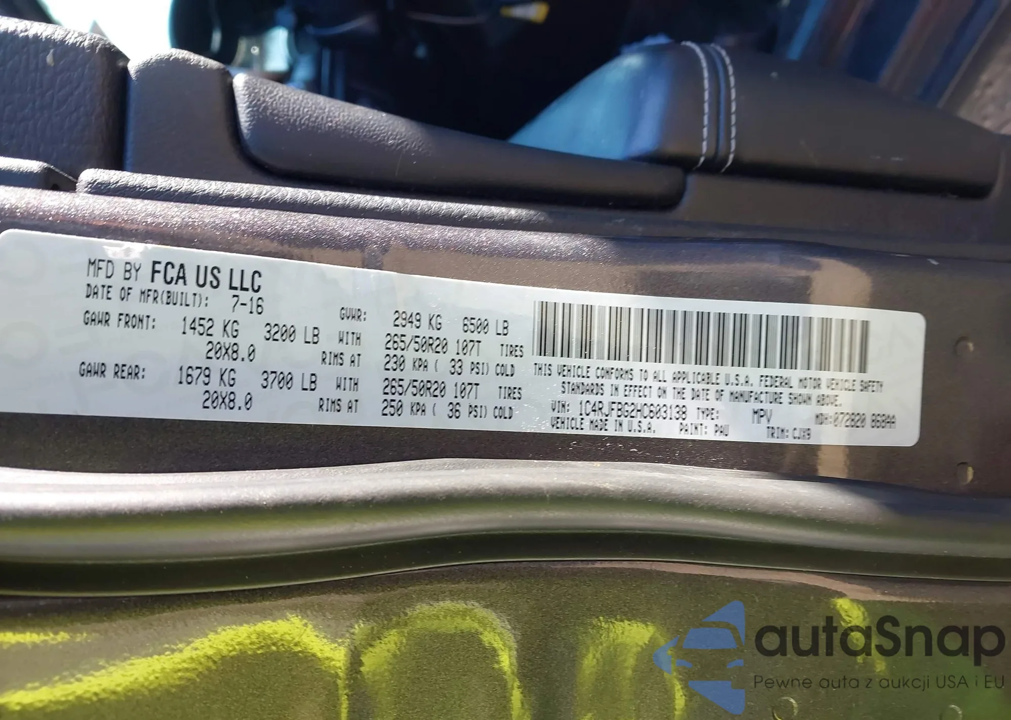 Samochód Jeep Grand Cherokee 2017 (VIN 1C4RJFBG2HC603138) nie był wcześniej licytowany. Dokumenty są czyste, przebieg odpowiada lub jest niższy niż średnia rynku. Sprzedaje go firma ubezpieczeniowa – polecamy zakup. Dostawa do portu zajmie ok. 6–8 tygodni.