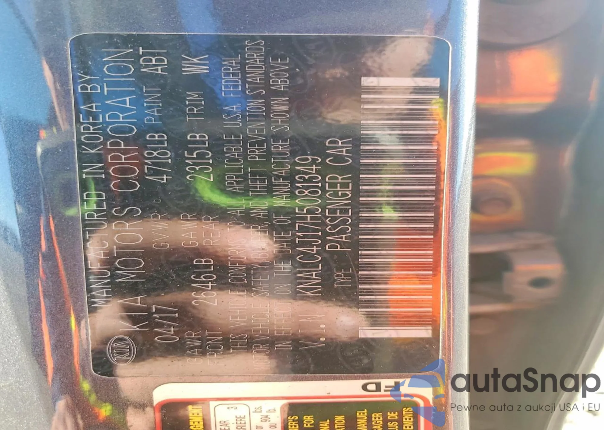 Samochód Kia Cadenza 2017 (VIN KNALC4J17H5081349) nie był wcześniej licytowany. Dokumenty są czyste, przebieg odpowiada lub jest niższy niż średnia rynku. Sprzedaje go firma ubezpieczeniowa – polecamy zakup. Dostawa do portu zajmie ok. 6–8 tygodni.