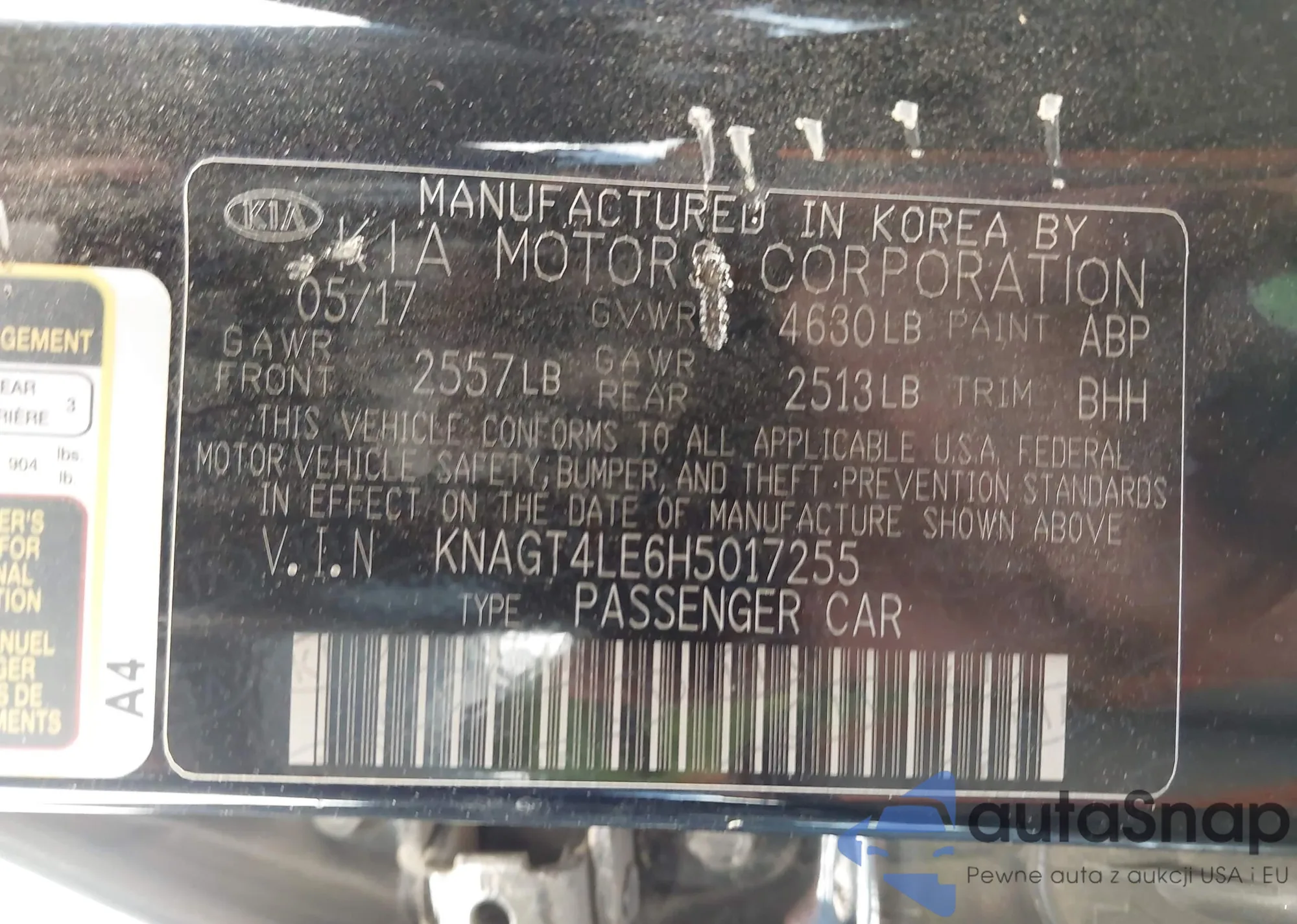 VIN: KNAGT4LE6H5017255