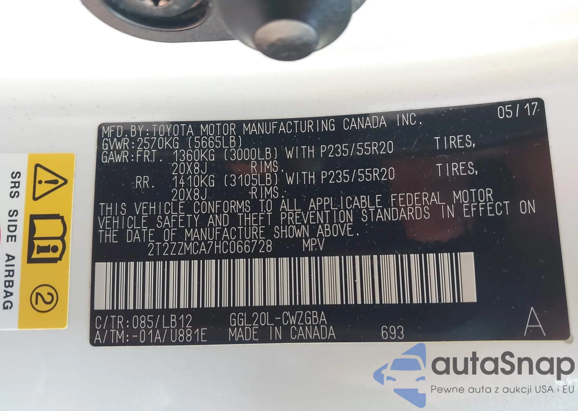 • VIN: 2T2ZZMCA7HC066728