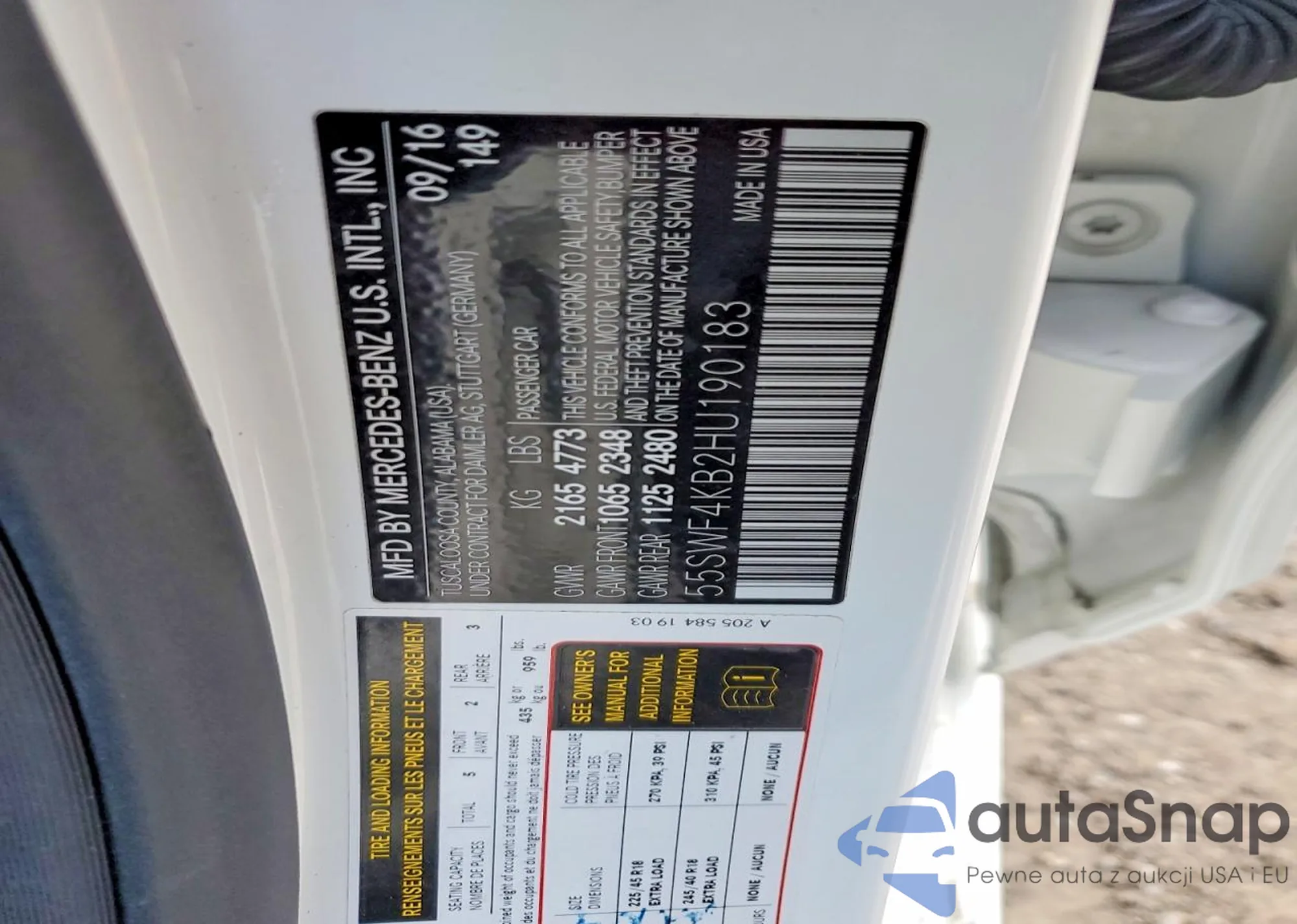 Samochód Mercedes-Benz C-klasse 2017 (VIN 55SWF4KB2HU190183) sprzedaje go niezweryfikowany sprzedawca. Zalecamy raport Carfax i potwierdzenie możliwości rejestracji pojazdu przed zakupem.