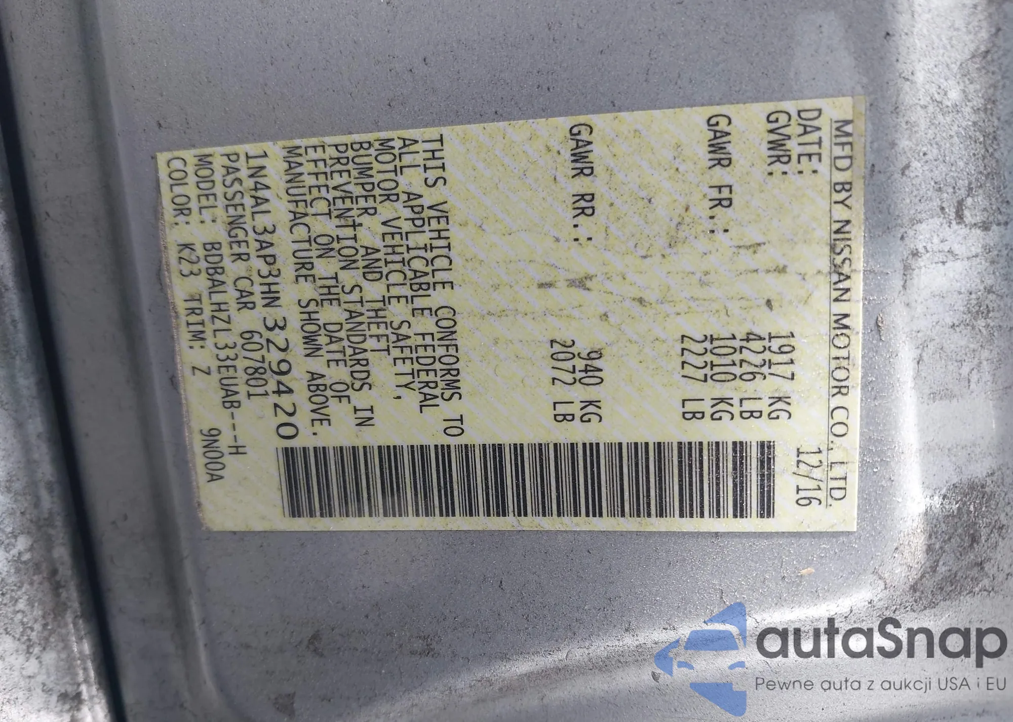 VIN: 1N4AL3AP3HN329420