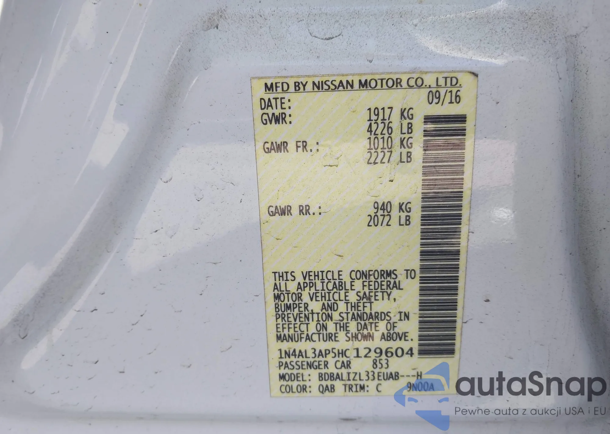 VIN: 1N4AL3AP5HC129604