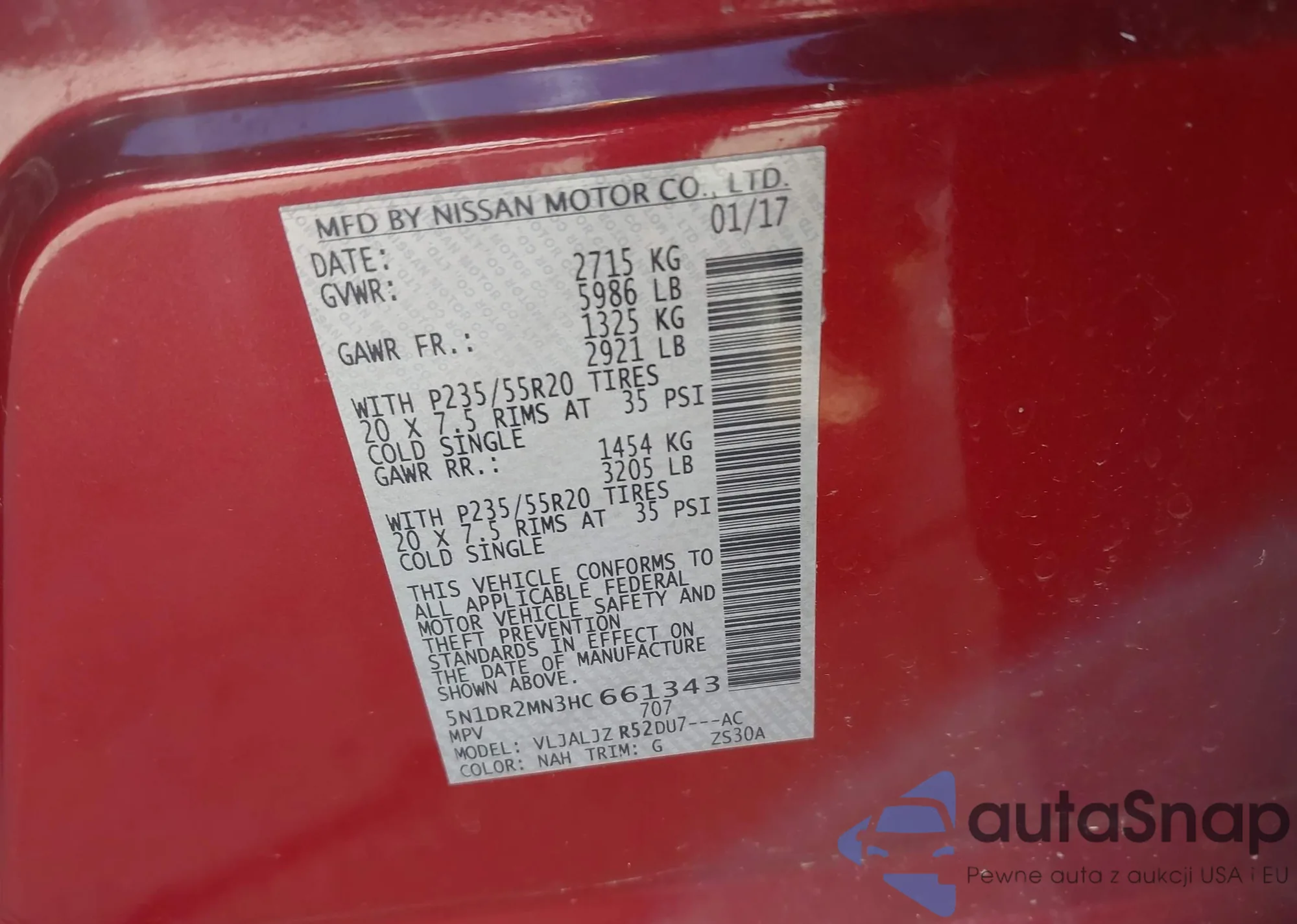 • VIN: 5N1DR2MN3HC661343
