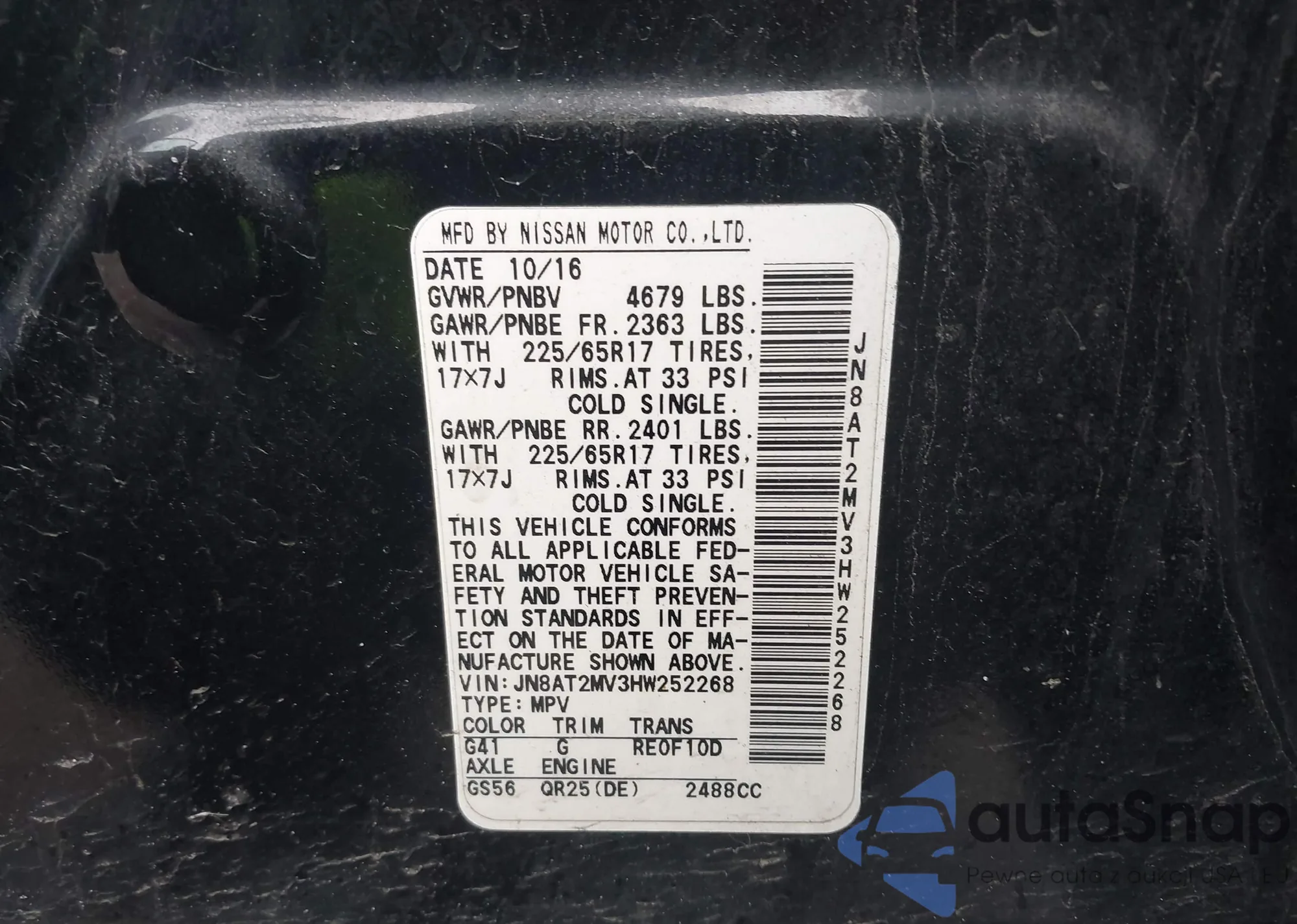 Samochód Nissan Rogue 2017 (VIN JN8AT2MV3HW252268) nie był wcześniej licytowany. Dokumenty są czyste, przebieg odpowiada lub jest niższy niż średnia rynku. Sprzedaje go firma ubezpieczeniowa – polecamy zakup. Dostawa do portu zajmie ok. 6–8 tygodni.
