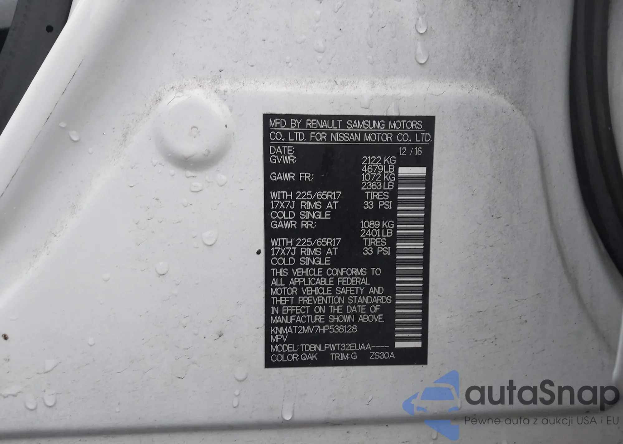 Samochód Nissan Rogue 2017 (VIN KNMAT2MV7HP538128) nie był wcześniej licytowany. Dokumenty są czyste, przebieg odpowiada lub jest niższy niż średnia rynku. Sprzedaje go firma ubezpieczeniowa – polecamy zakup. Dostawa do portu zajmie ok. 6–8 tygodni.