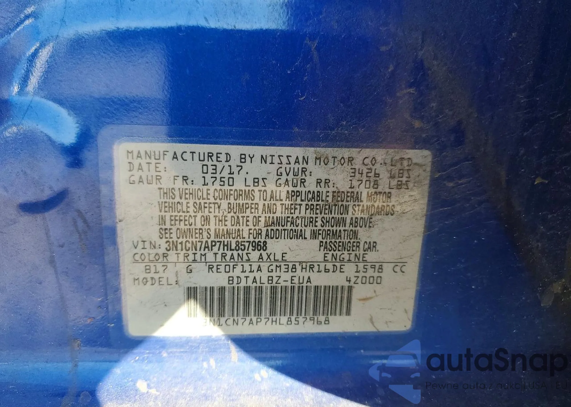 VIN: 3N1CN7AP7HL857968