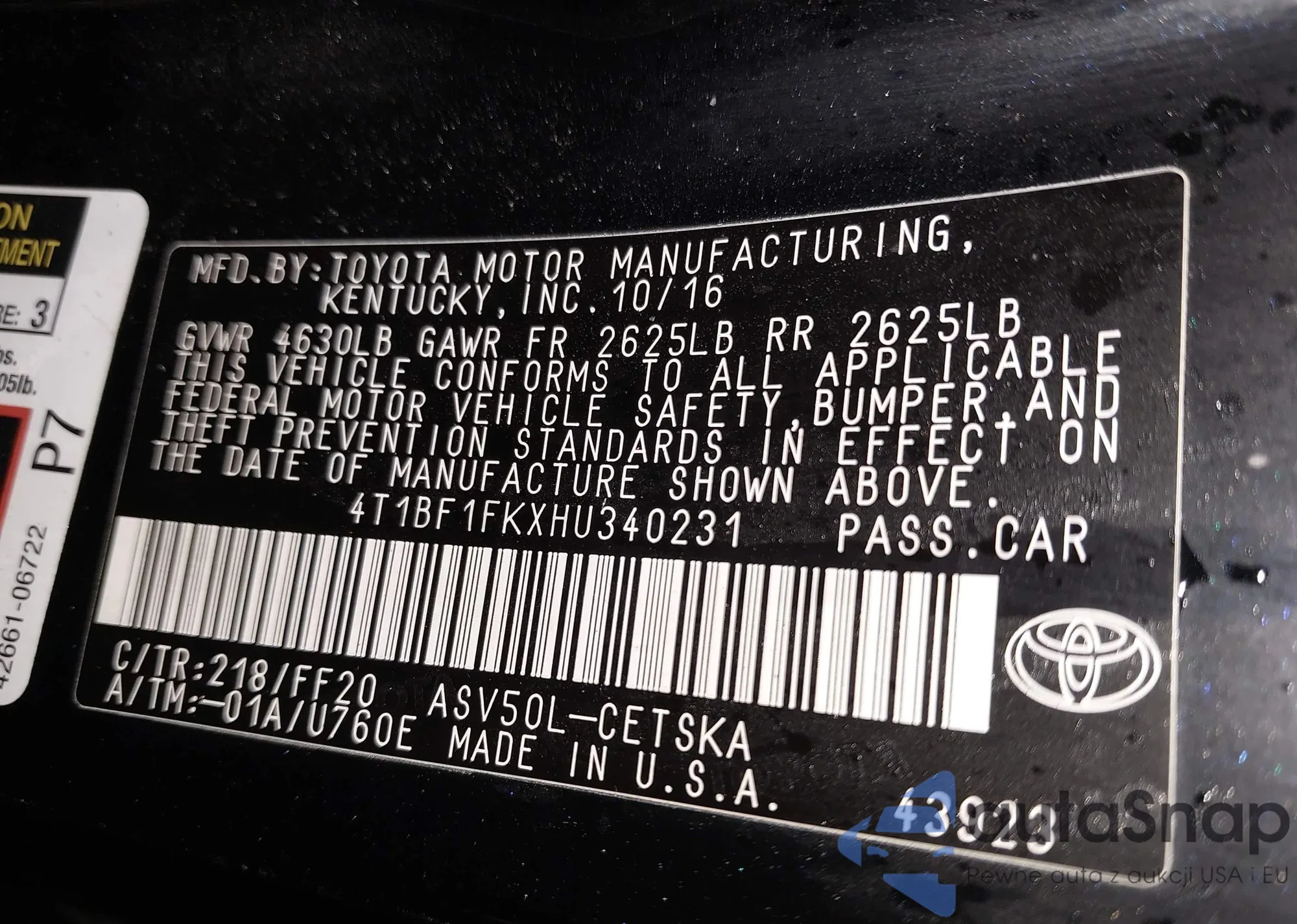 VIN: 4T1BF1FKXHU340231