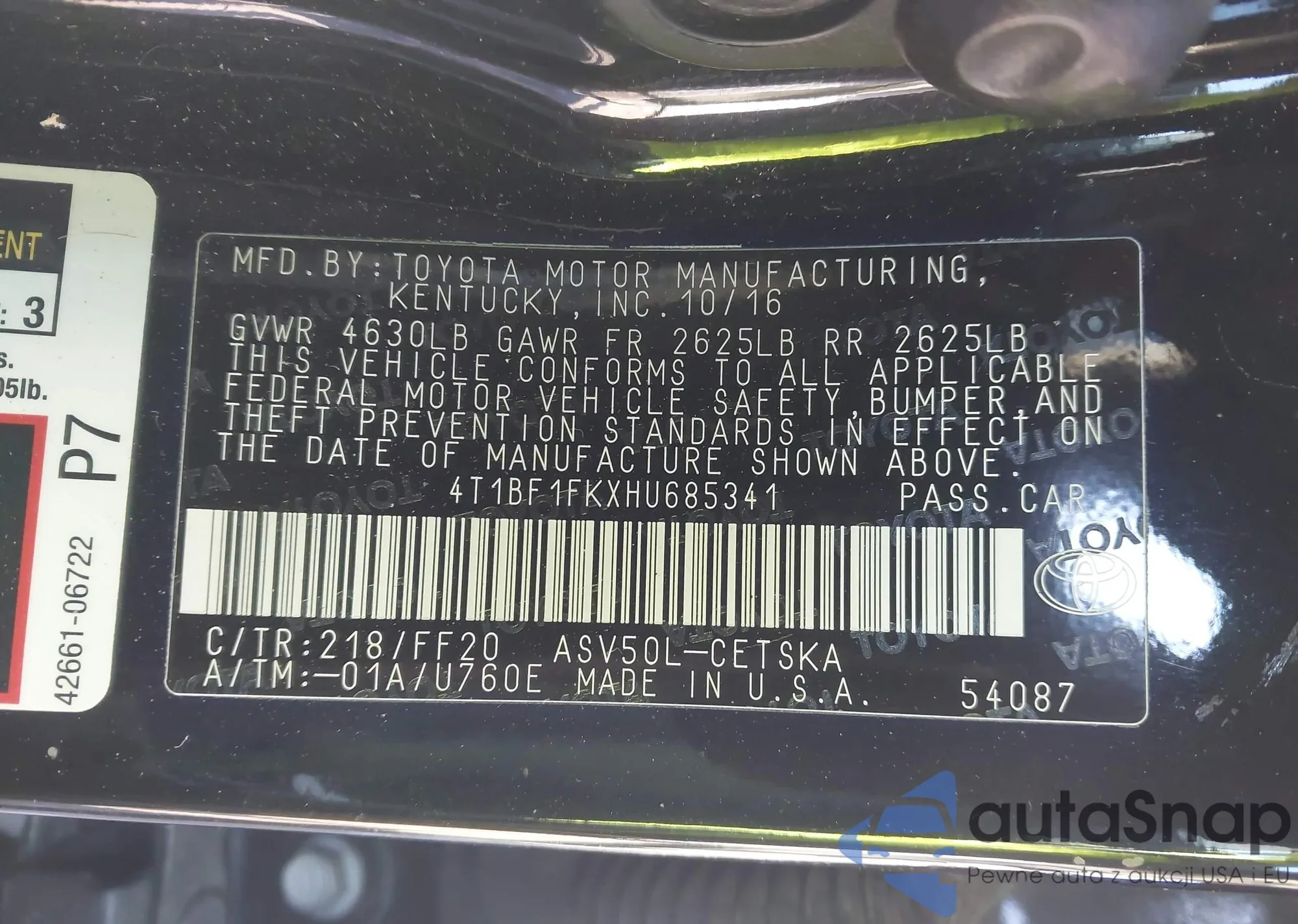 • VIN: 4T1BF1FKXHU685341