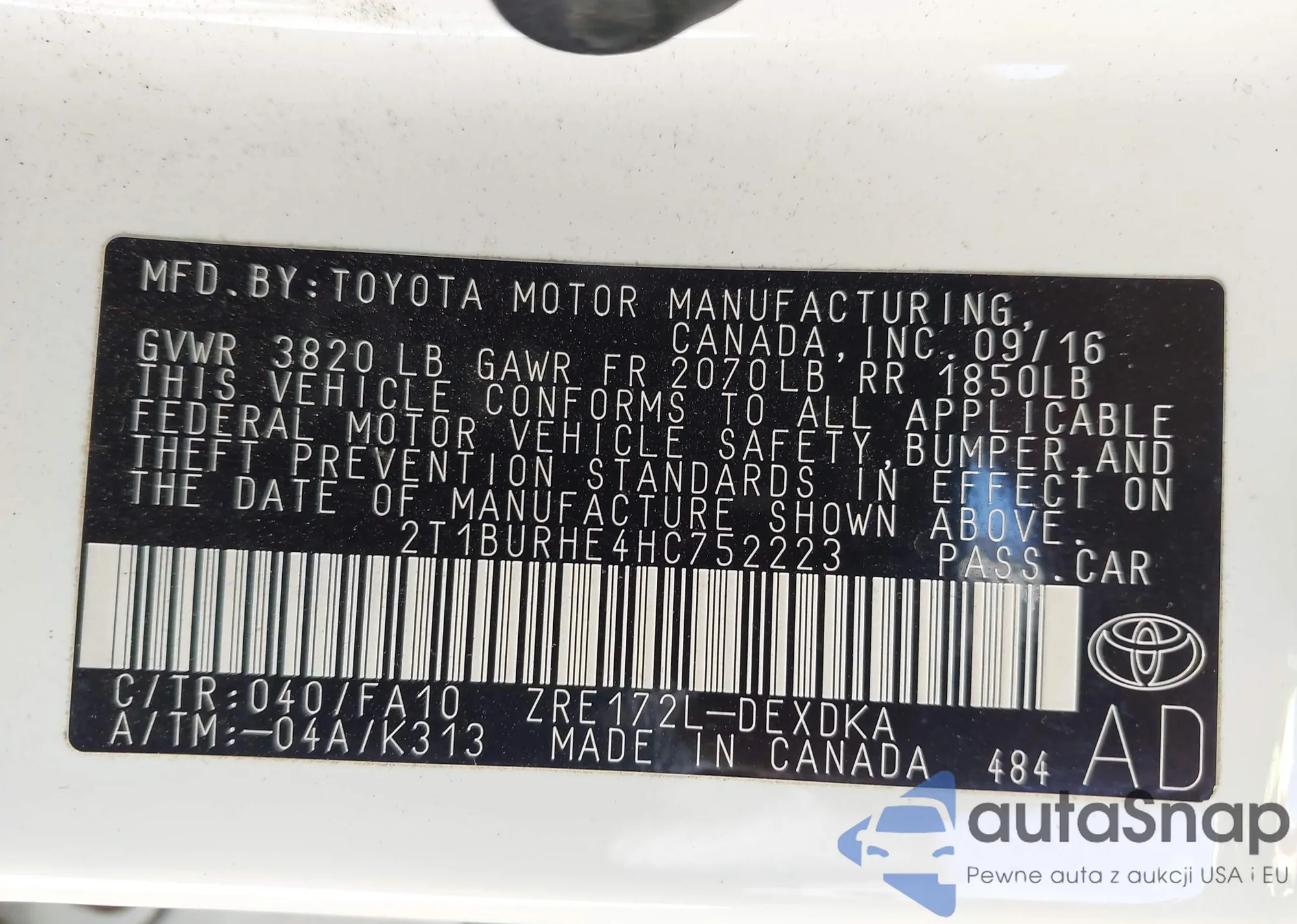 VIN: 2T1BURHE4HC752223