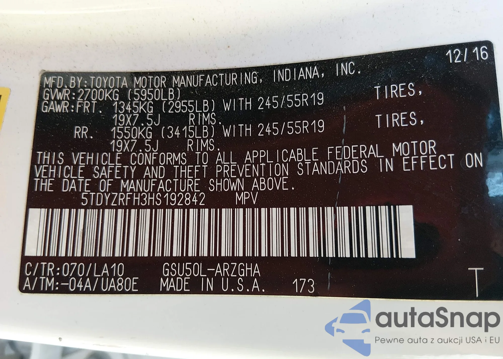 Samochód Toyota Highlander 2017 (VIN 5TDYZRFH3HS192842) nie był wcześniej licytowany. Dokumenty są czyste, przebieg odpowiada lub jest niższy niż średnia rynku. Sprzedaje go firma ubezpieczeniowa – polecamy zakup. Dostawa do portu zajmie ok. 6–8 tygodni.