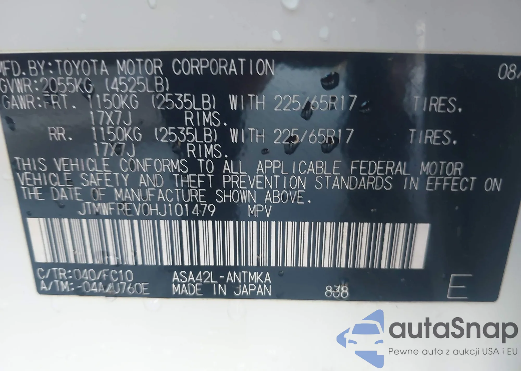 • VIN: JTMWFREV0HJ101479
