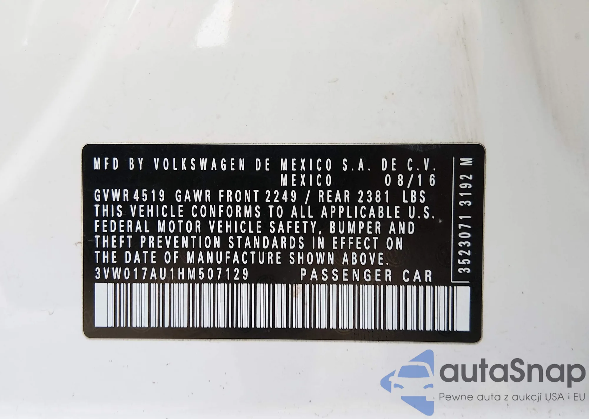 • VIN: 3VW017AU1HM507129