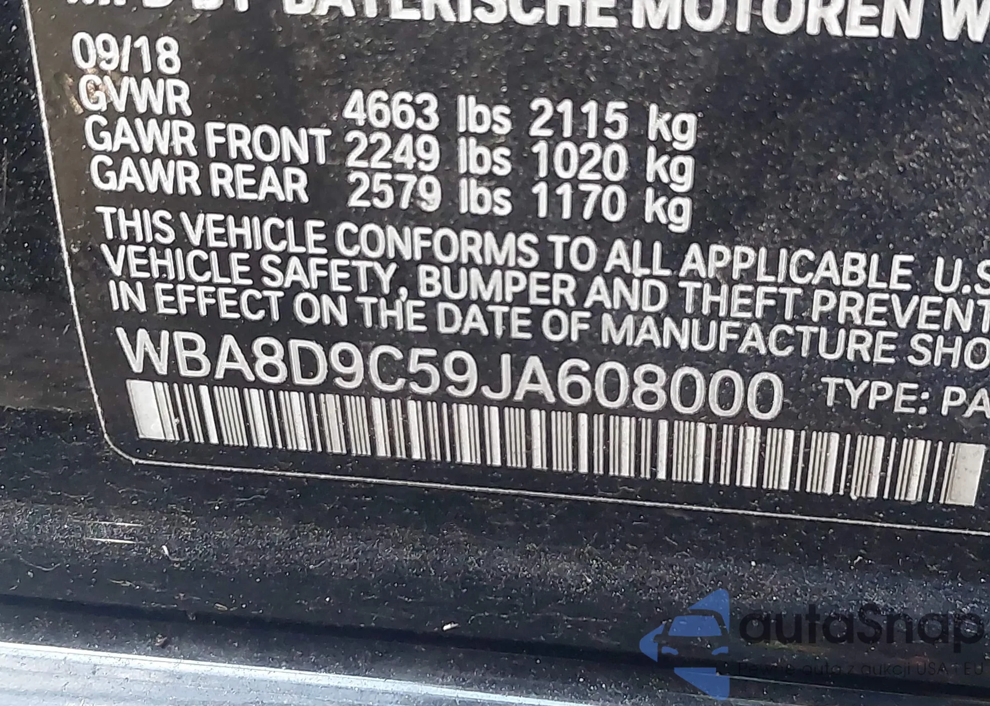 Samochód BMW 3er 2018 (VIN WBA8D9C59JA608000) nie był wcześniej licytowany. Dokumenty są czyste, przebieg odpowiada lub jest niższy niż średnia rynku. Sprzedaje go firma ubezpieczeniowa – polecamy zakup. Dostawa do portu zajmie ok. 6–8 tygodni.