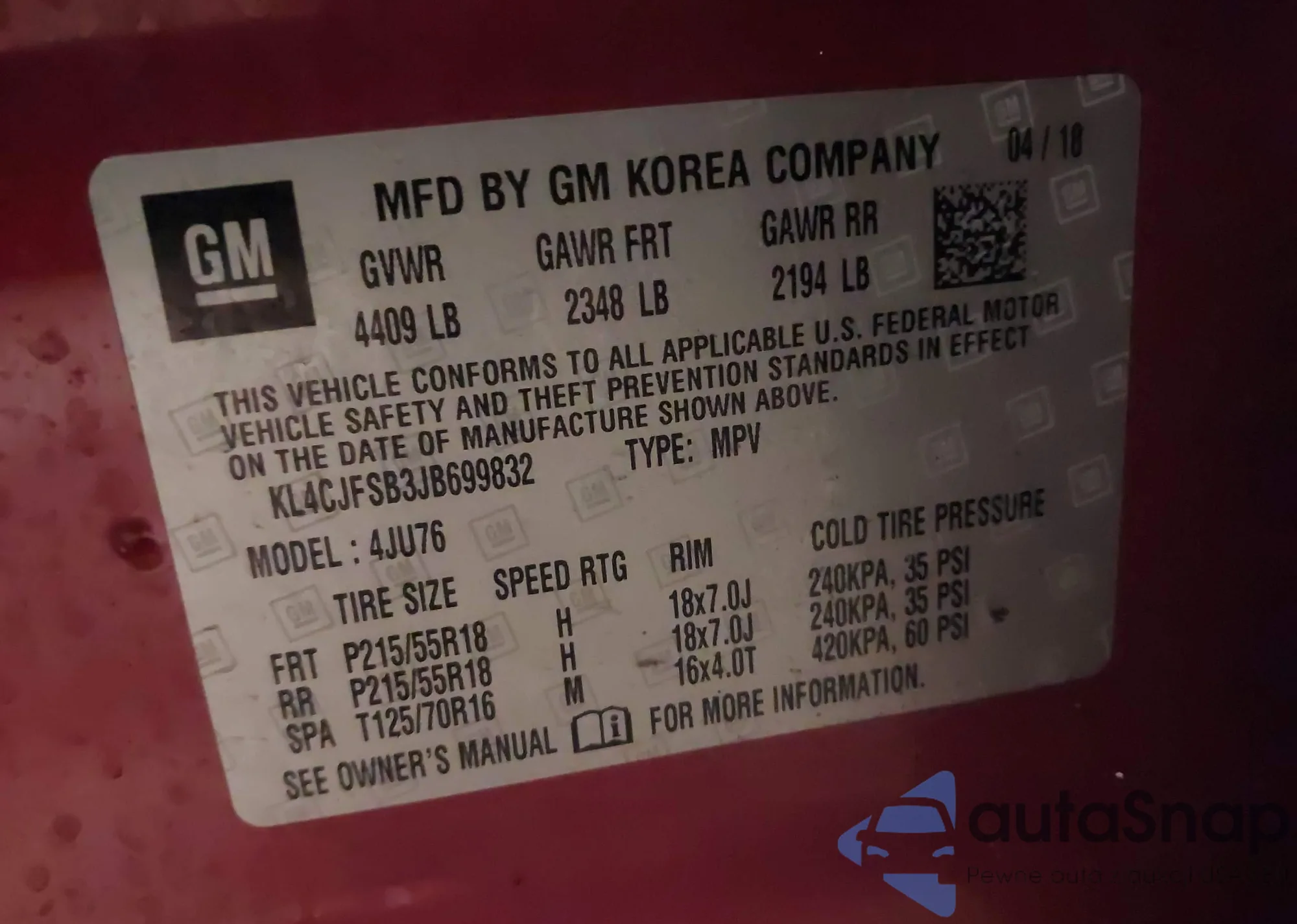 VIN: KL4CJFSB3JB699832