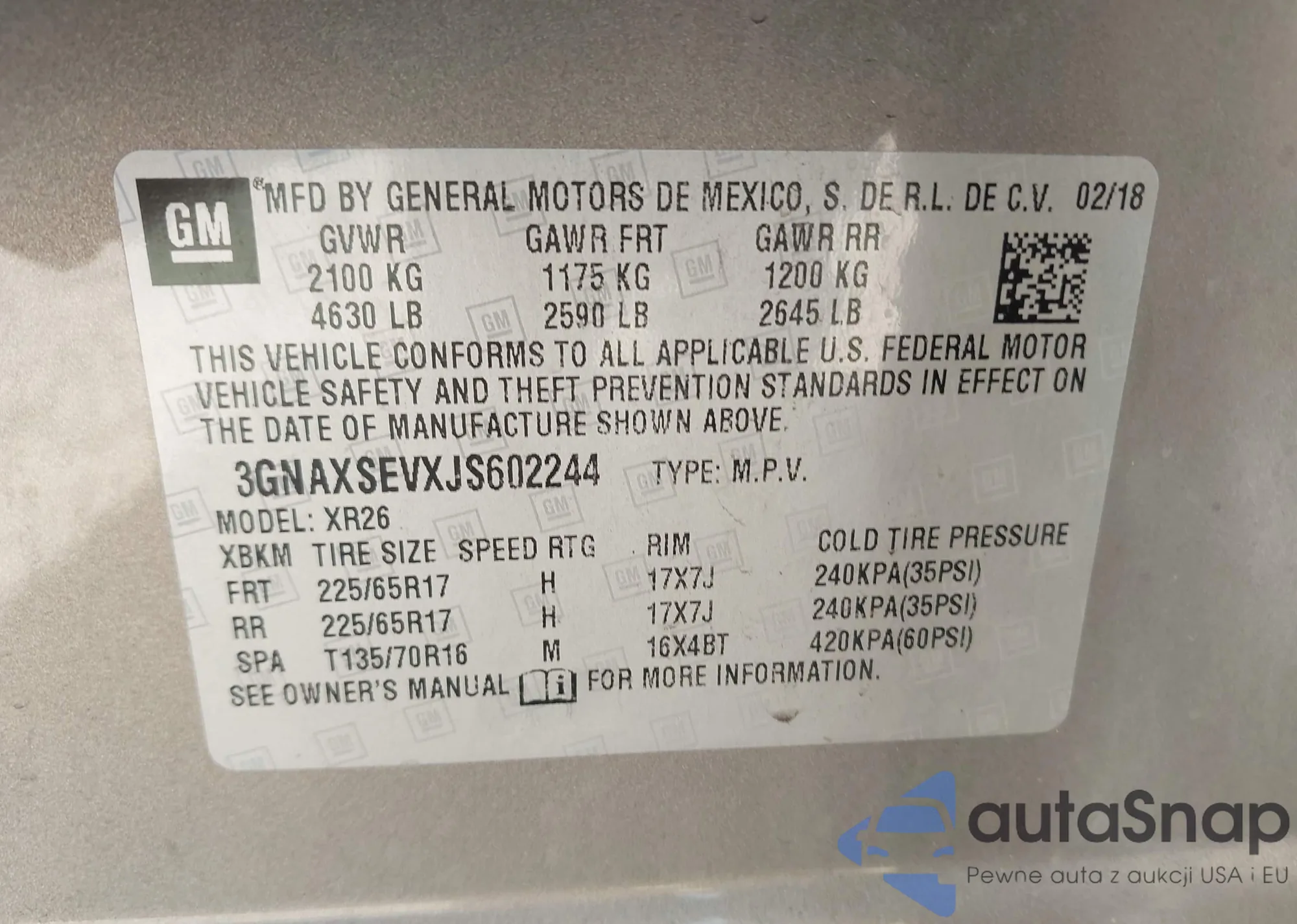 VIN: 3GNAXSEVXJS602244
