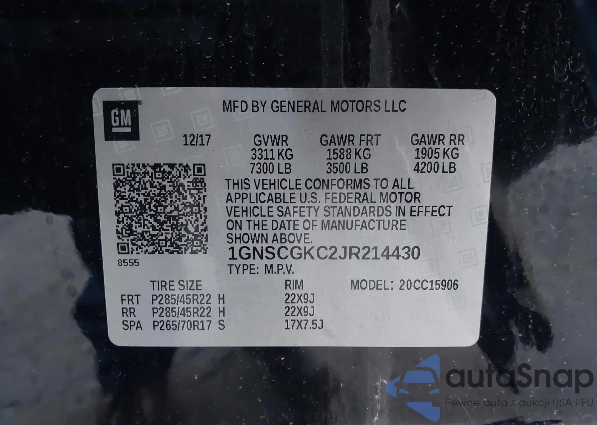 • VIN: 1GNSCGKC2JR214430