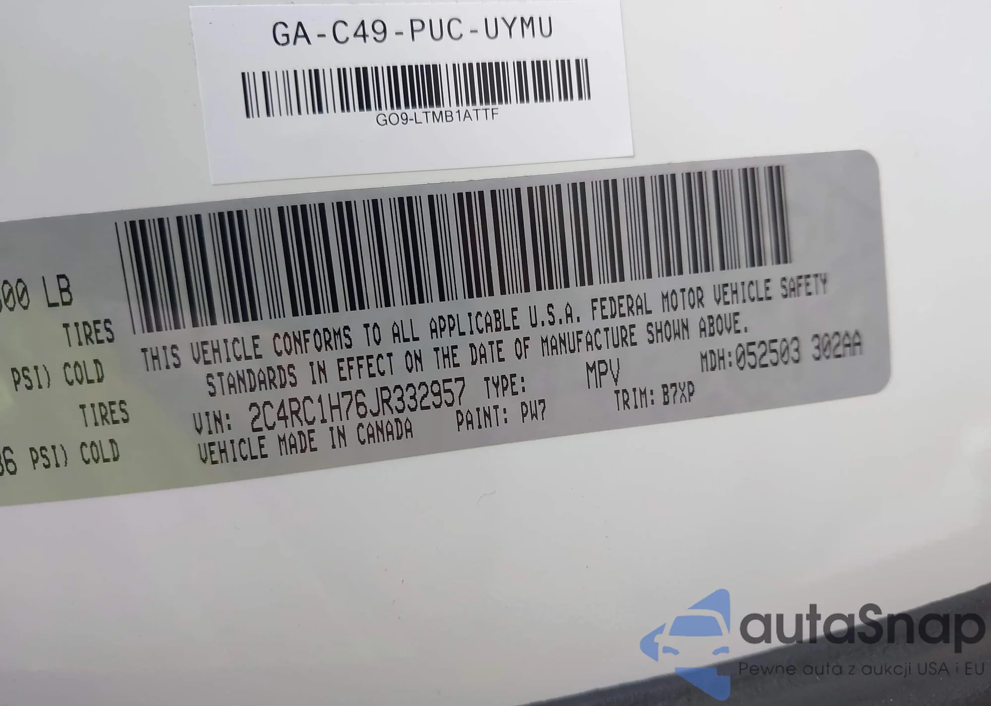 Samochód Chrysler Pacifica 2018 (VIN 2C4RC1H76JR332957) ma dokumenty uniemożliwiające rejestrację. Mogą pojawić się trudności przy eksporcie i rejestracji. Skontaktuj się z ekspertami AutaSnap w celu znalezienia alternatywy.