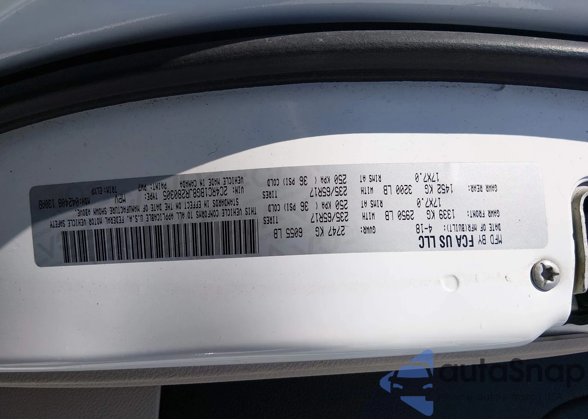 • VIN: 2C4RC1BG8JR280305