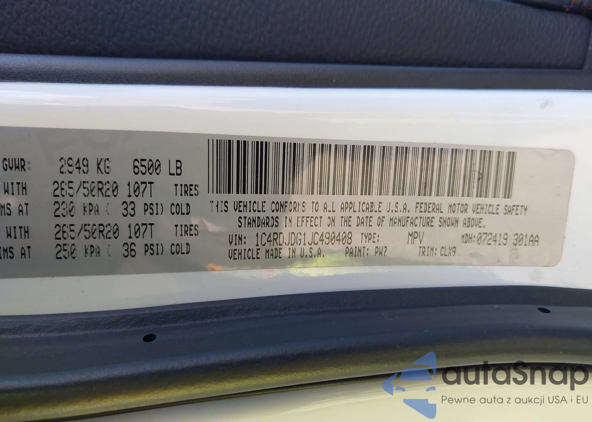 Samochód Dodge Durango 2018 (VIN 1C4RDJDG1JC490408) nie był wcześniej licytowany. Dokumenty są czyste, przebieg odpowiada lub jest niższy niż średnia rynku. Sprzedaje go firma ubezpieczeniowa – polecamy zakup. Dostawa do portu zajmie ok. 6–8 tygodni.