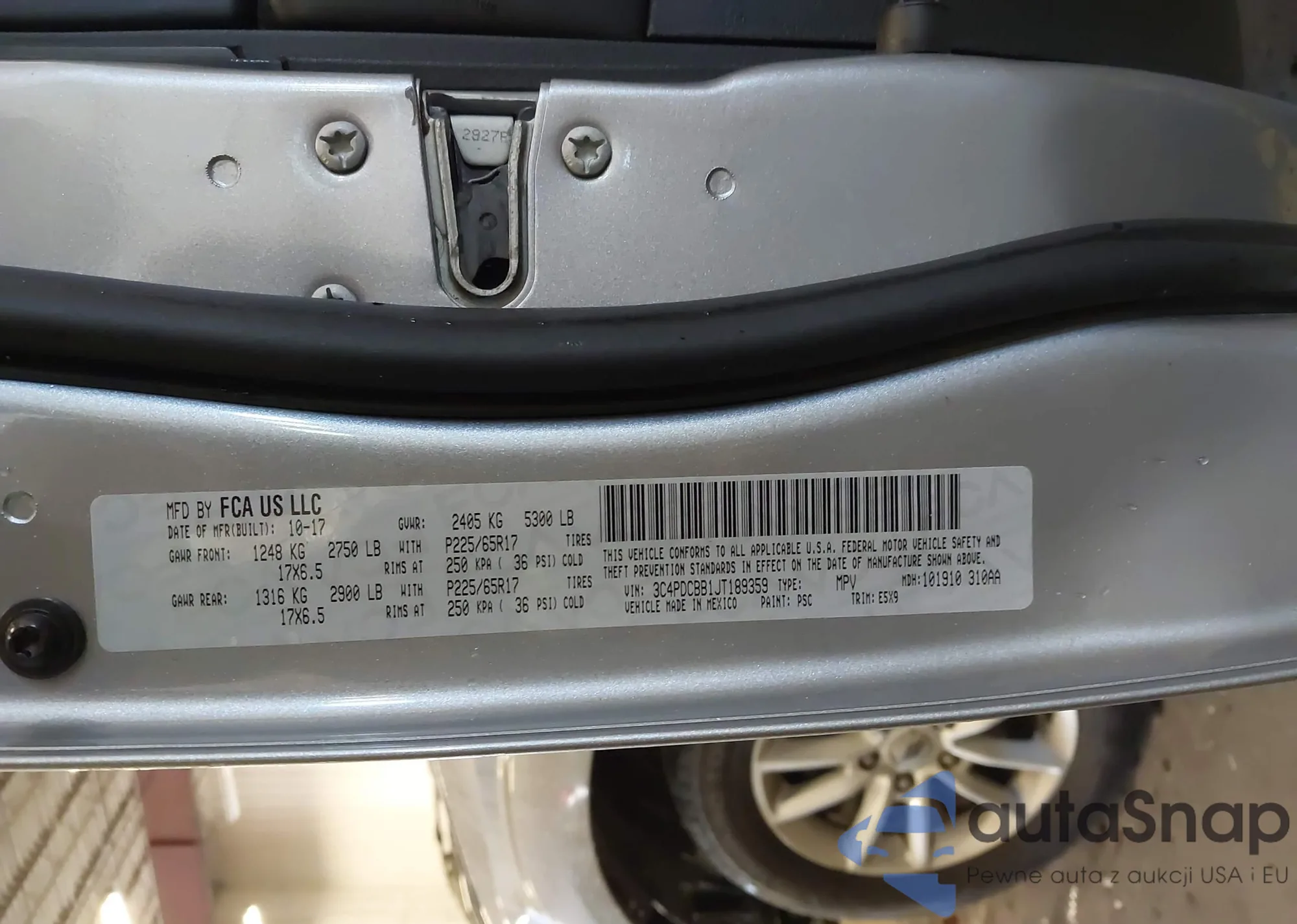 • VIN: 3C4PDCBB1JT189359
