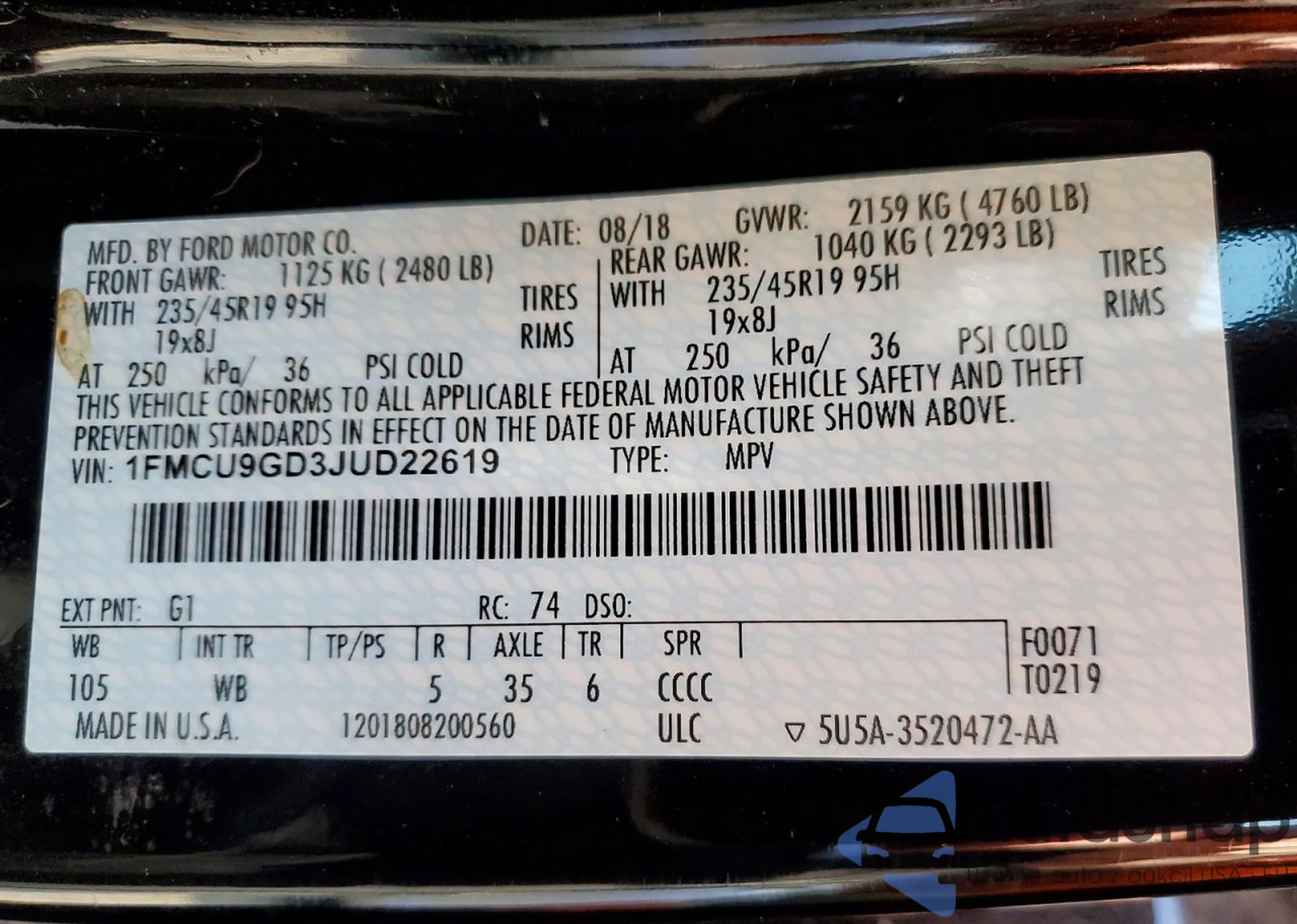 VIN: 1FMCU9GD3JUD22619