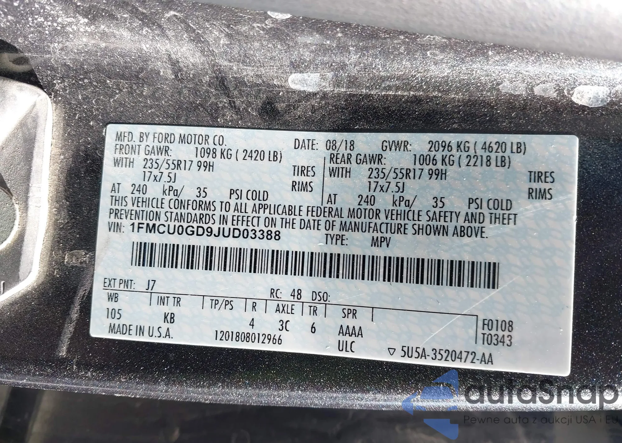 VIN: 1FMCU0GD9JUD03388