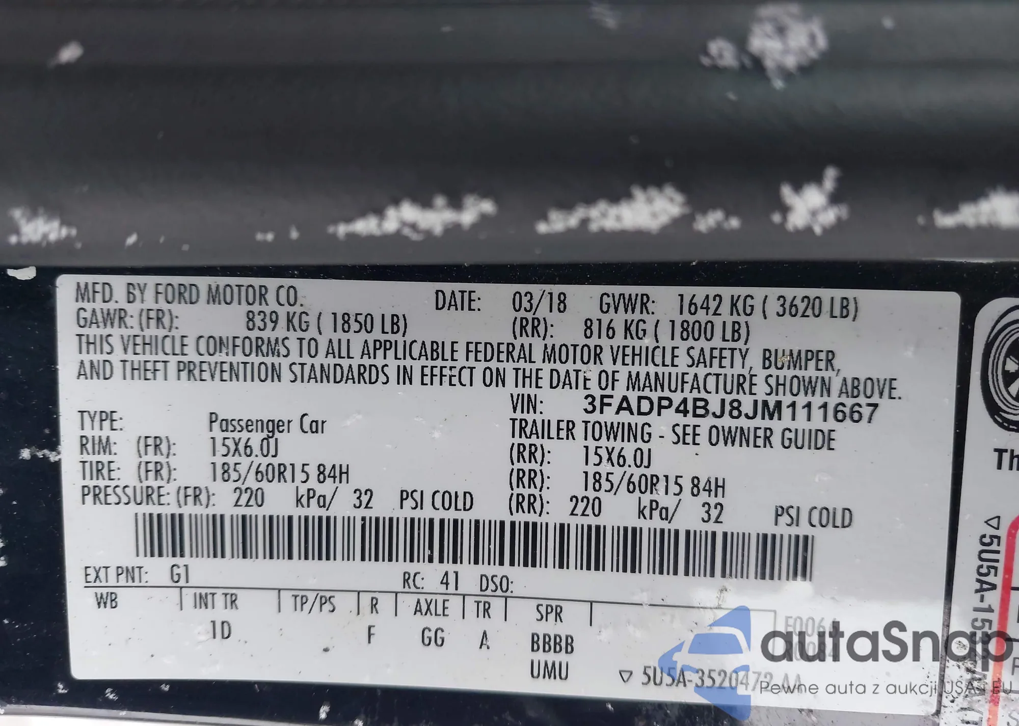 Samochód Ford Fiesta 2018 (VIN 3FADP4BJ8JM111667) nie był wcześniej licytowany. Dokumenty są czyste, przebieg odpowiada lub jest niższy niż średnia rynku. Sprzedaje go firma ubezpieczeniowa – polecamy zakup. Dostawa do portu zajmie ok. 6–8 tygodni.