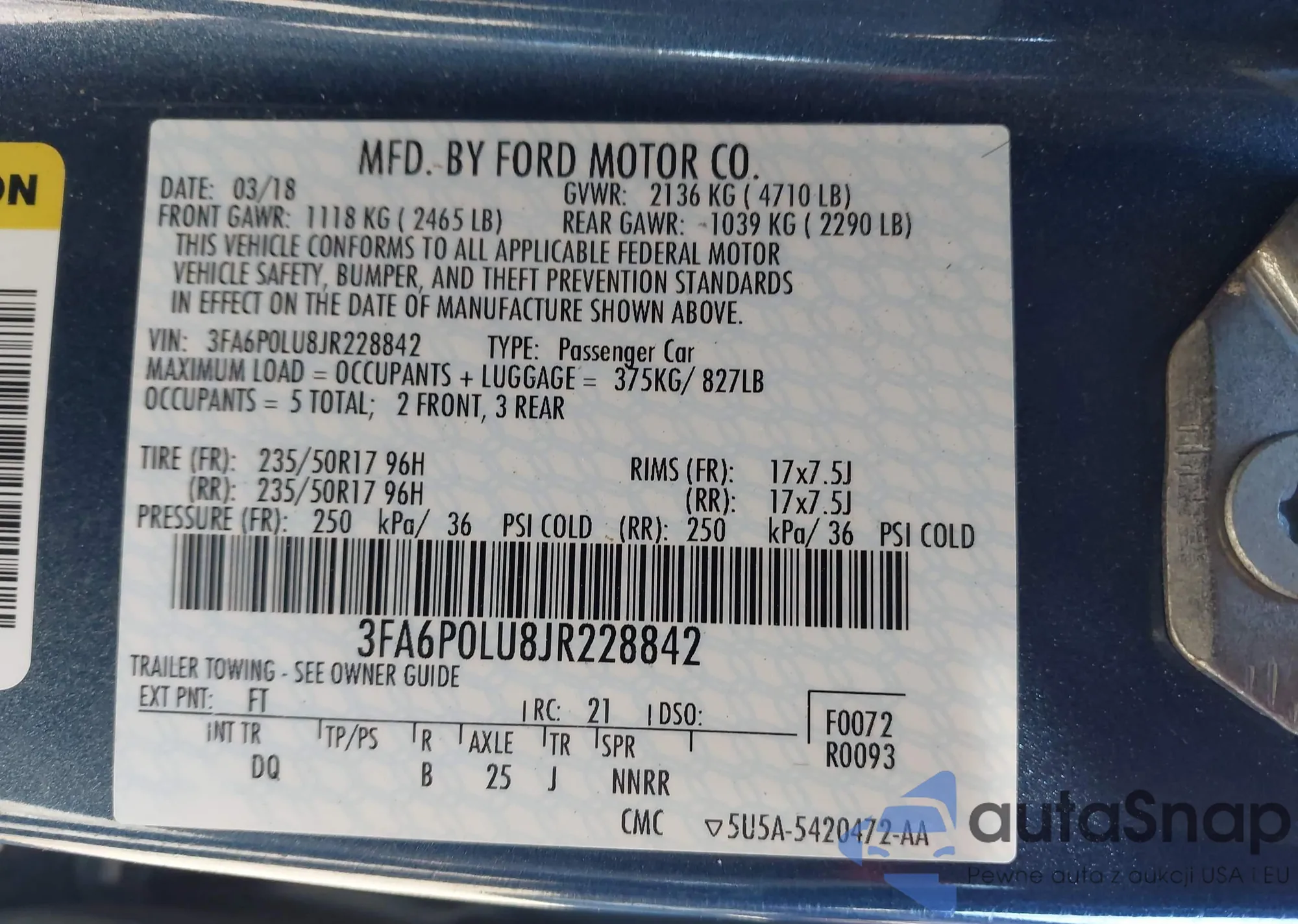• VIN: 3FA6P0LU8JR228842