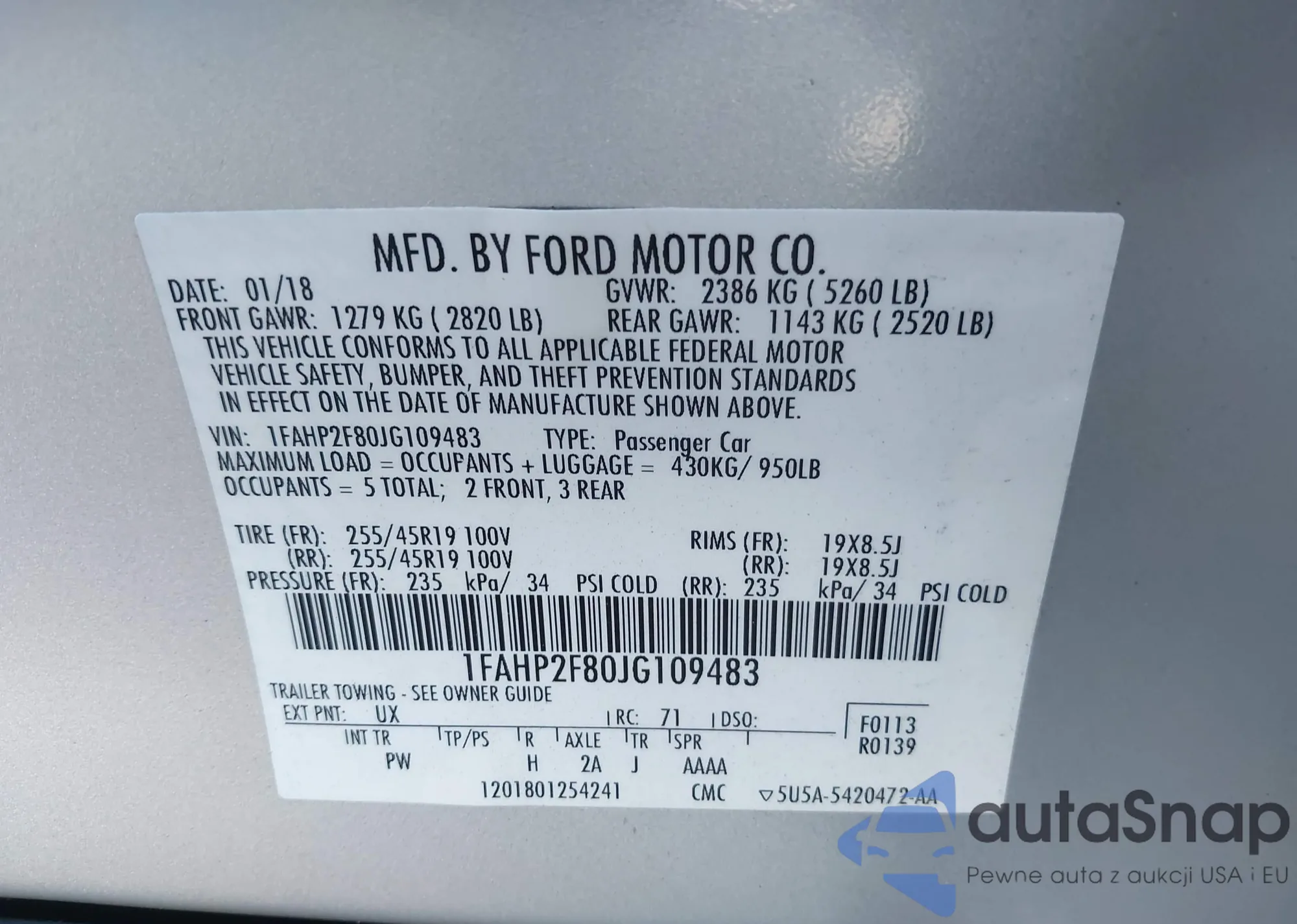 Samochód Ford Taurus 2018 (VIN 1FAHP2F80JG109483) nie był wcześniej licytowany. Dokumenty są czyste, przebieg odpowiada lub jest niższy niż średnia rynku. Sprzedaje go firma ubezpieczeniowa – polecamy zakup. Dostawa do portu zajmie ok. 6–8 tygodni.