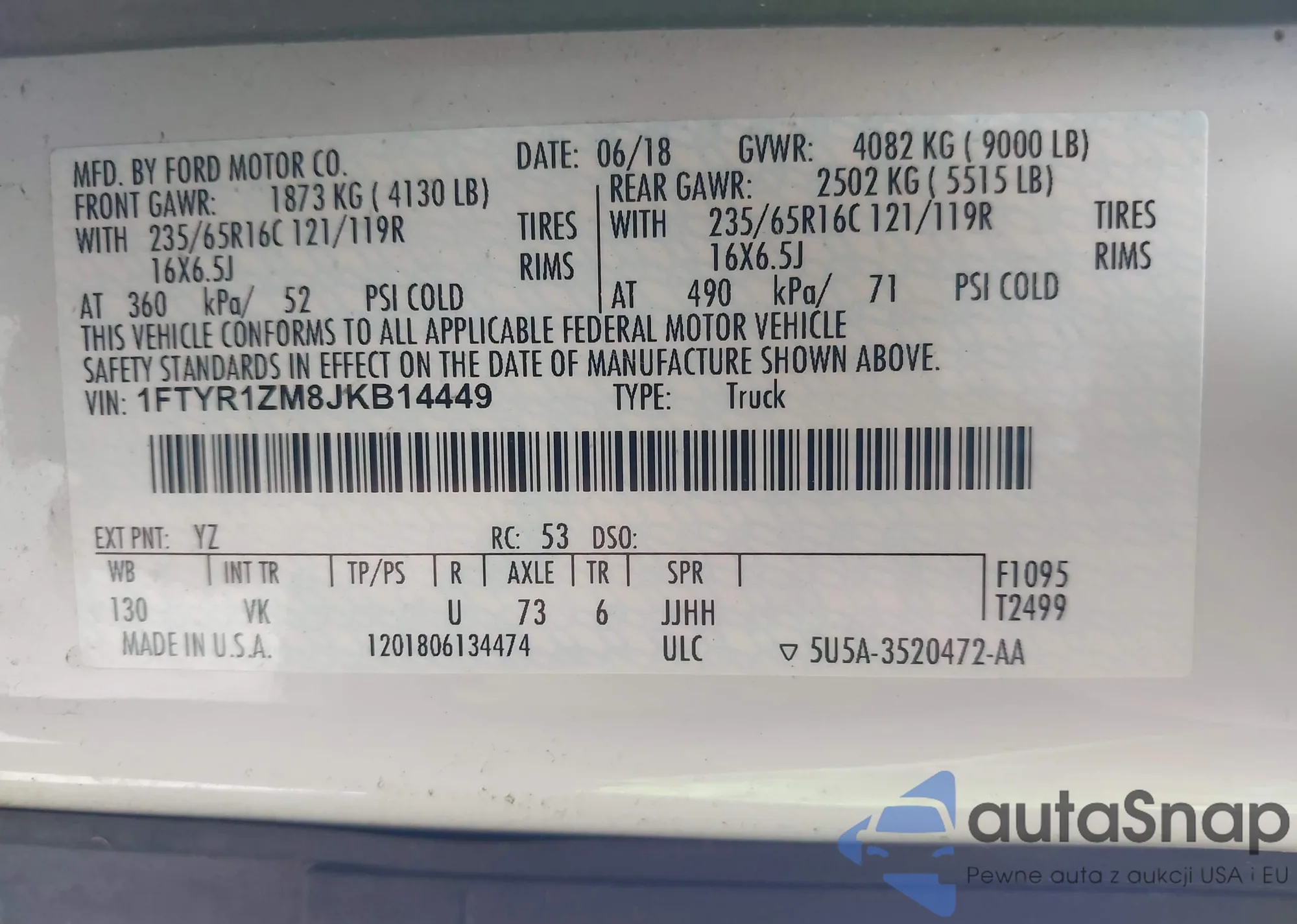 VIN: 1FTYR1ZM8JKB14449