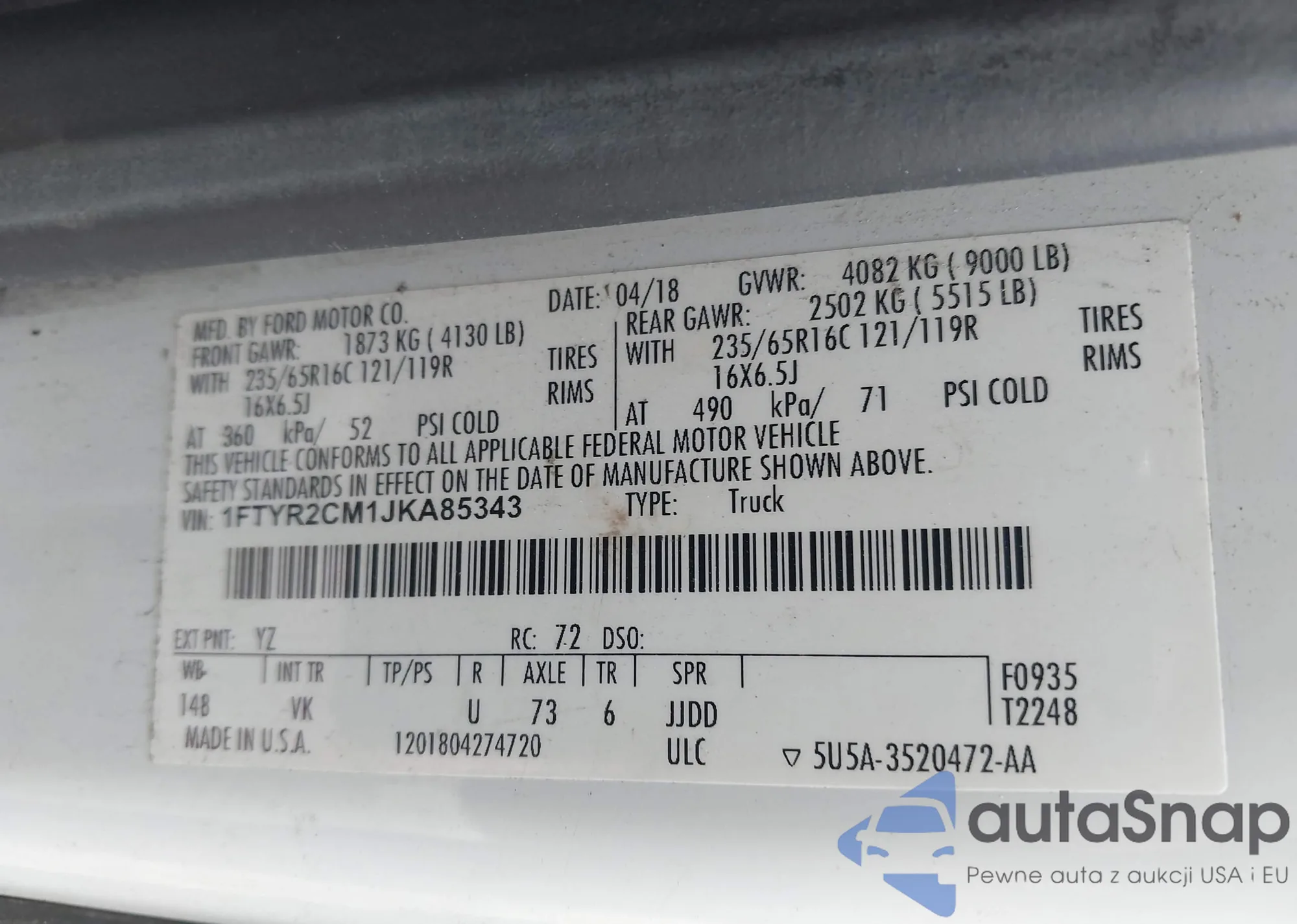 VIN: 1FTYR2CM1JKA85343