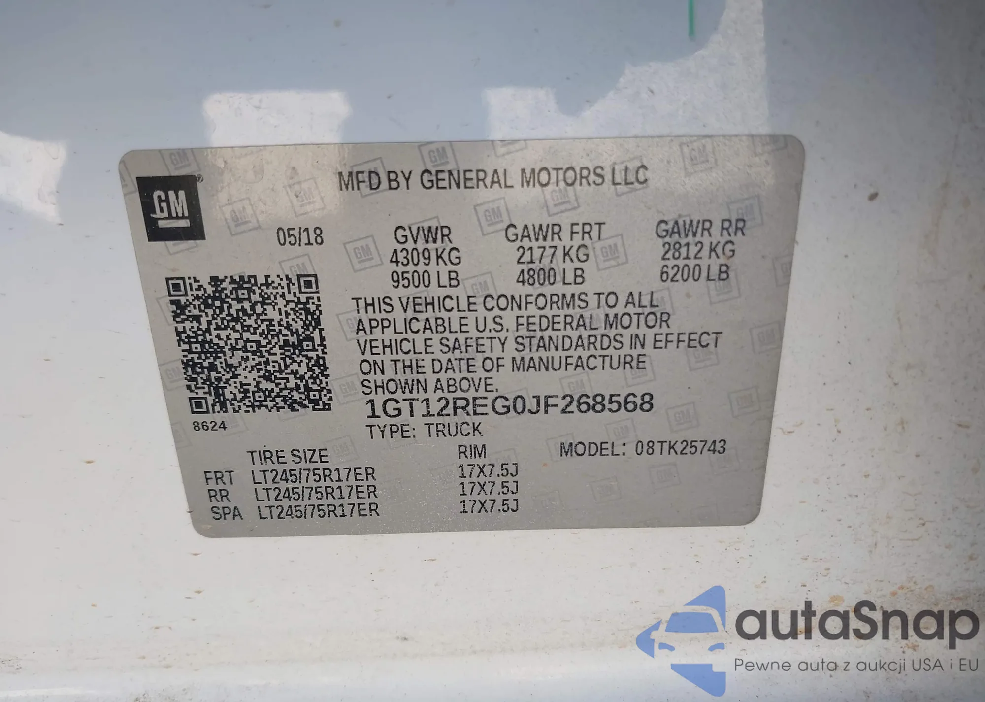 • VIN: 1GT12REG0JF268568