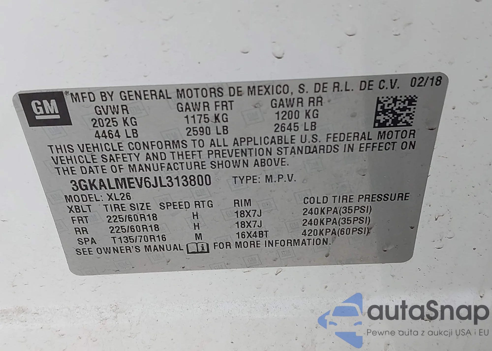 • VIN: 3GKALMEV6JL313800