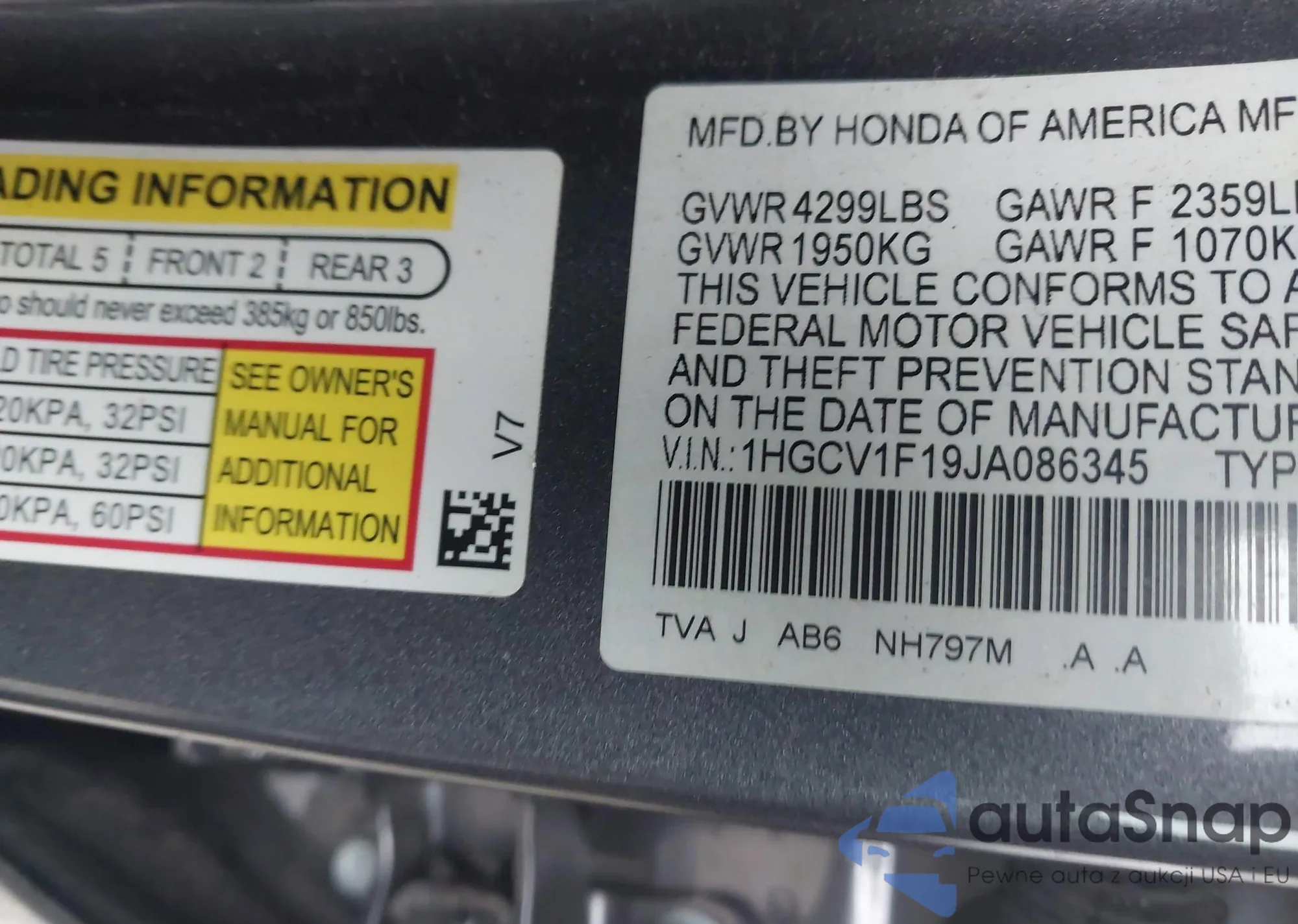 VIN: 1HGCV1F19JA086345