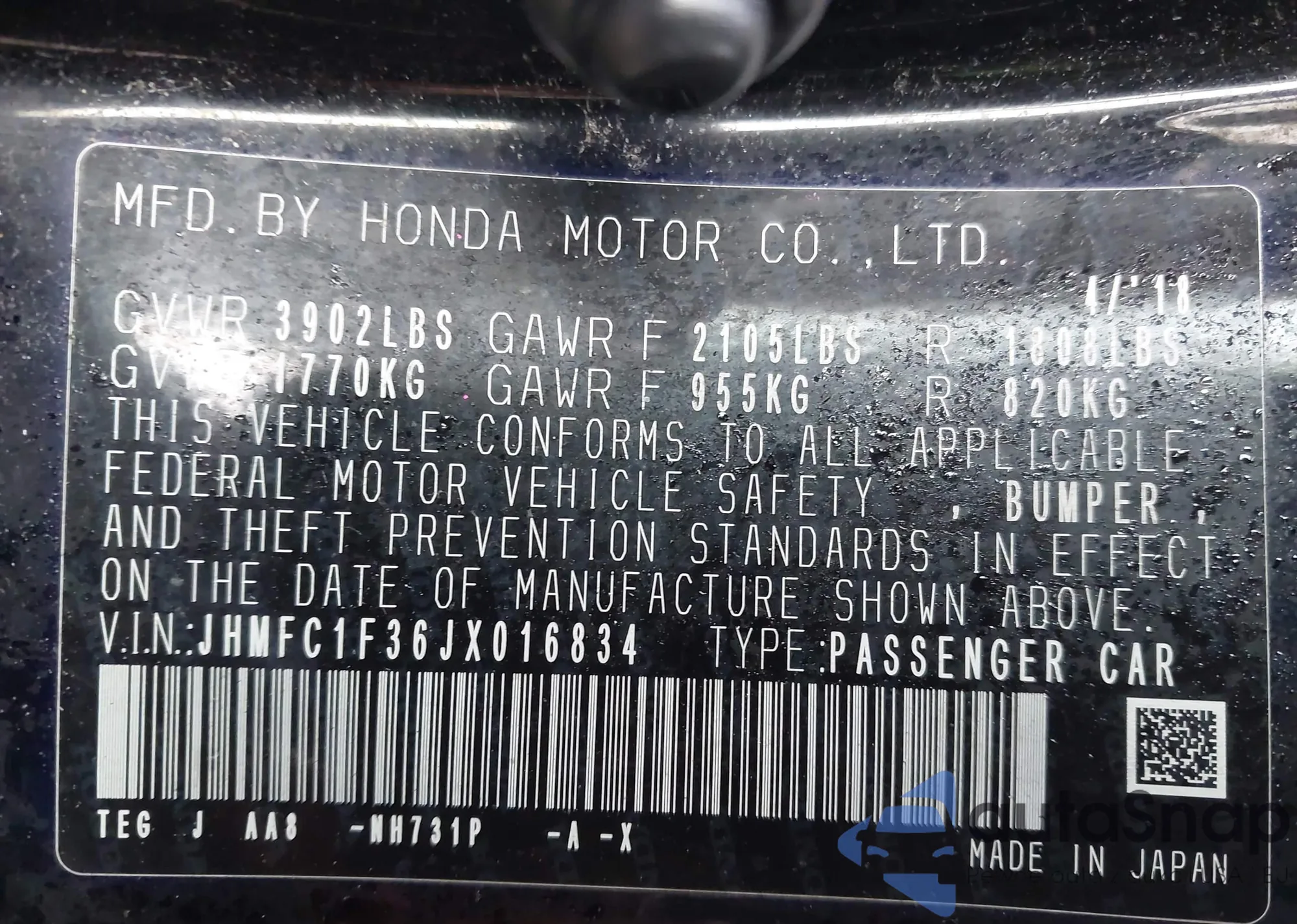 Samochód Honda Civic 2018 (VIN JHMFC1F36JX016834) nie był wcześniej licytowany. Dokumenty są czyste, przebieg odpowiada lub jest niższy niż średnia rynku. Sprzedaje go firma ubezpieczeniowa – polecamy zakup. Dostawa do portu zajmie ok. 6–8 tygodni.